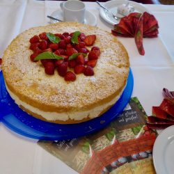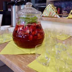 Neben Erdbeerservietten und kleinen Aufmerksamkeiten auf jedem Teller, gab es eine leckere alkoholfreie Erdbeerbowle sowie zweierlei Erdbeertorten.