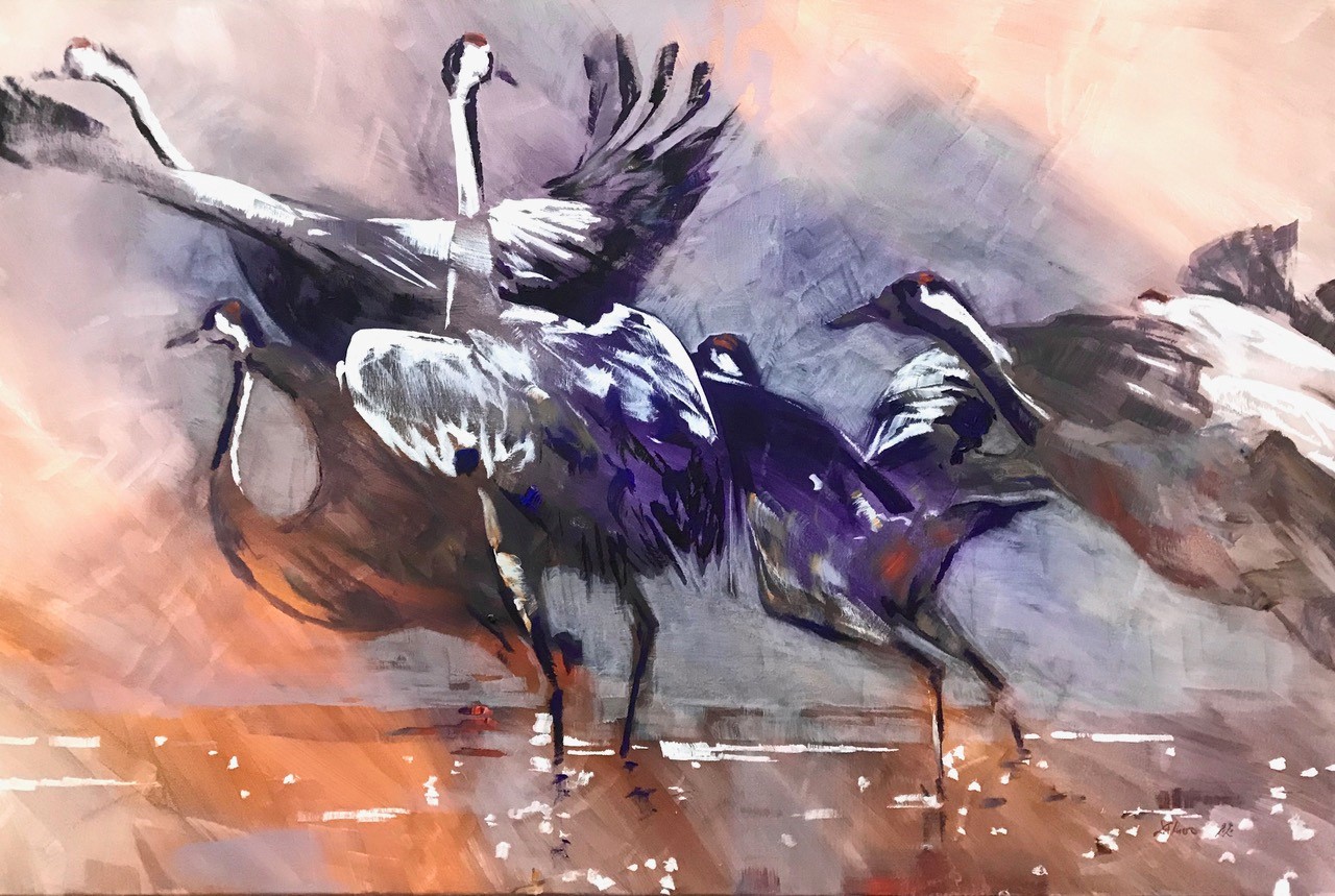 Beschwingte Leichtigkeit, Licht und Weite sind ihre Lieblingsthemen, ebenso wie Stimmungsvolles aus der Natur. Ihre Gemälde zeichnen sich aus durch einen klar gesetzten Pinselduktus in zartem Pastell oder PopArt und all dies spiegelt sich wider in der aktuellen Ausstellung „Freude & Glück in Fülle“, die bis Ende März 2023 hier zu sehen sein wird.