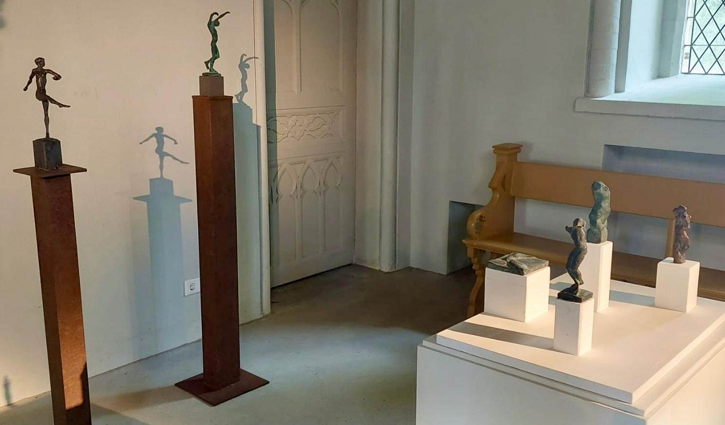 Maroske, der bei Feldberg lebte, hat „Fussballspieler“ und „Tanzende“ geformt, auch Schwangere und Verzweifelte, Aufrechte und Zurückgezogene. Seine Arbeiten stehen in enger Tradition zu den Großen des Bildhauer-Genres. Er war 2020 kurz vor seinem 70. Lebensjahr überraschend gestorben. Der befreundete Kunsthistoriker, der ebenfalls die Galerie betreute, war zuvor schwer erkrankt.