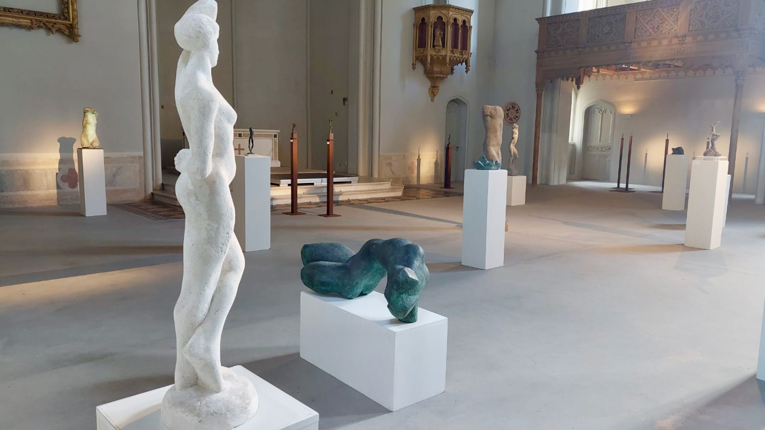 Die Körper winden sich – sie lehnen sich auf, ducken sich weg, scheinen im Denken versunken. Freunde ausdrucksstarker Bildhauerei kommen derzeit in der Schlosskirche in Neustrelitz auf ihre Kosten – aber wohl zum letzten Mal in dieser Form. Bis 3. Oktober sind mehr als 50 Arbeiten des Künstlers Uwe Maroske (1951-2020) zu sehen. Die Schau beendet eine 22 Jahre währende Tradition, die viele wichtige Bildhauer und deren Werke an die Mecklenburgische Seenplatte gelockt hat.