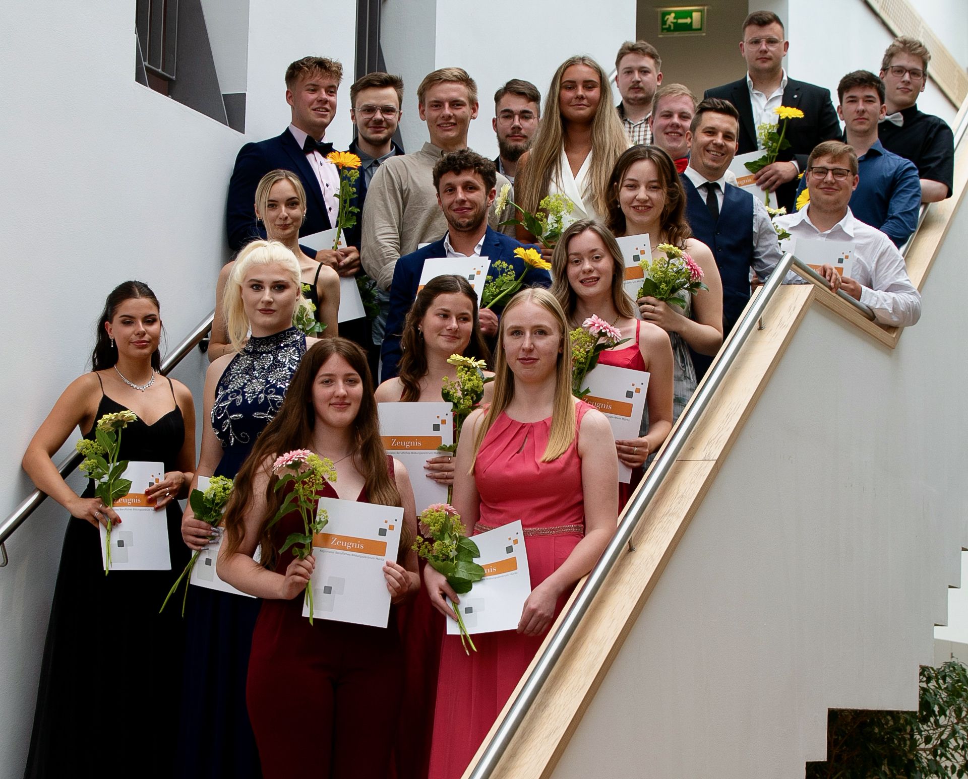 Besonders erwähnenswert sind Vivian Baumann (Schwerpunkt Wirtschaft) und Florian Weiher (Schwerpunkt Technik), die sich in den Abiturprüfungen mit ausgezeichneten Leistungen hervorgetan haben.