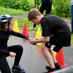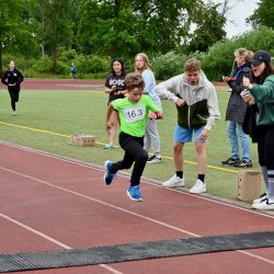 „Wir sind mit den Ergebnissen trotz des schlechten Wetters sehr zufrieden, unsere Schüler haben alles gegeben und hatten auch viel Spaß dabei“, resümierte Internatsleiter Markus Klein, der den „Hut“ für den Triathlon auf hatte.