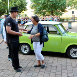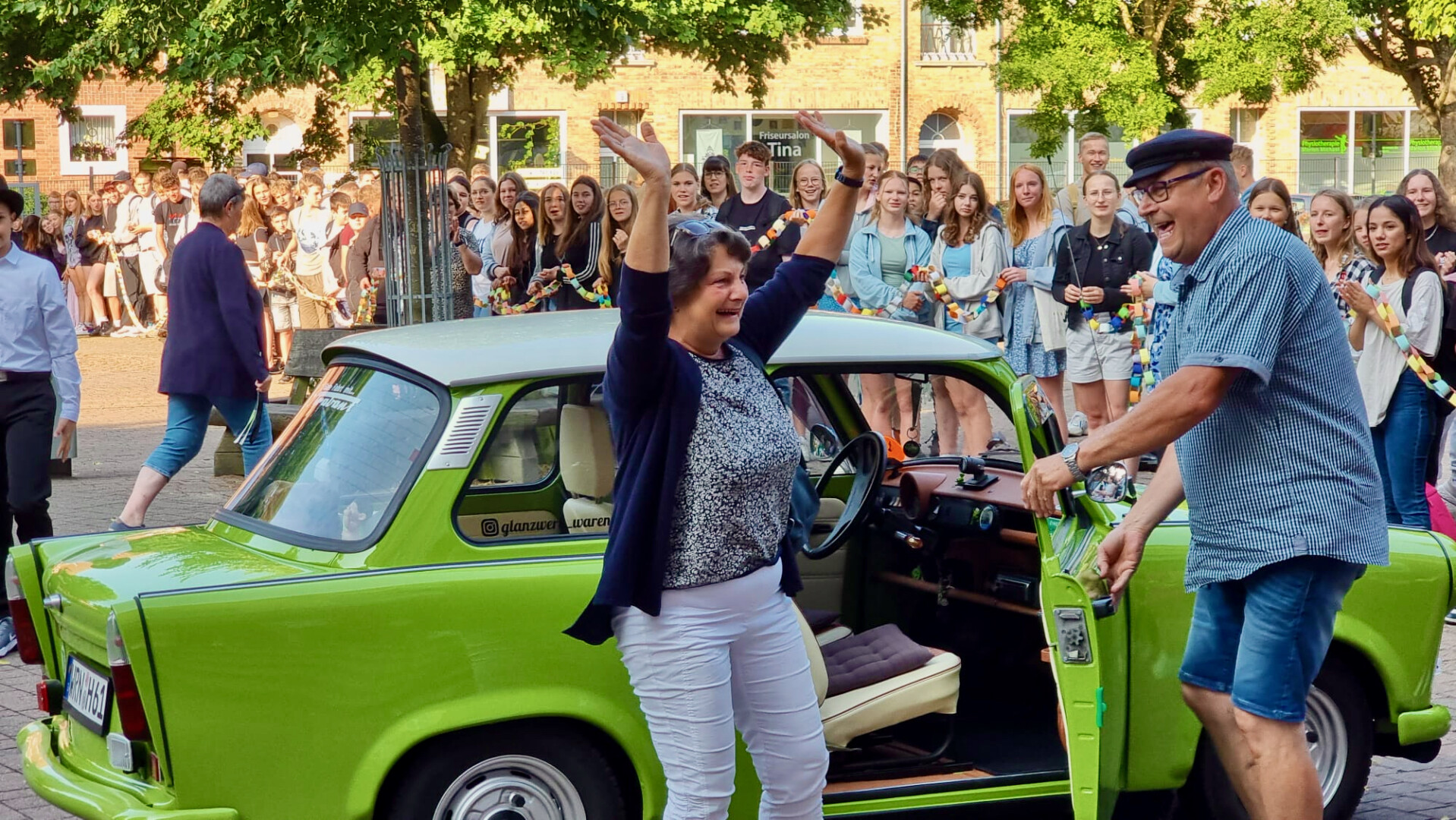 Ob sie sich im Spätsommer des Jahres 1982 mit einem Trabant zu ihrem ersten Arbeitstag in der Gustav-Sobottka-Schule in der Warener Goethestraße aufmachte, lässt sich nicht mehr so genau sagen. An ihrem gestrigen letzten Schultag fuhr Sylvia Hänsel am Morgen aber mit einem grünen „Trabi“ vor oder besser gesagt, sie wurde vorgefahren. Nach 42 Jahren als Lehrerin in Waren hieß es für die Schulleiterin der Regionalen Schule Waren/West gestern, Abschied zu nehmen. Dass ihr das alles andere als leicht fiel, ist ihren Schülern und Kollegen, die sie mit einem Spalier und dickem Applaus empfingen, sicherlich nicht entgangen – ihre „Chefin“ hatte mit sich und den Emotionen zu kämpfen. Zum Glück waren mit Ehemann Wolfgang und Sohn Marcus (Foto rechts) die beiden Menschen an ihrer Seite, die sie immer unterstützt, aufgefangen und wenn es sein musste, auch mal wieder aufgebaut haben. Denn in 42 Jahren ist einiges passiert im Lehrer-Leben von Sylvia Hänsel, vor allem die letzten 15 Jahre waren sehr schwer, wie sie in einem Gespräch mit „Wir sind Müritzer“ verrät. Das hat einen Grund: Die Bildungspolitik in Deutschland und Mecklenburg-Vorpommern, aber auch in der Stadt Waren.