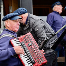 Ganz klassisch ging es auch bei Prokurist Sebastian Paetsch zu. Er war mit einem Bauchladen unterwegs. Einem sehr wertvollen. Denn Paetsch bot „Nationalparkkaviar“ an – natürlich aus der Produktion der Müritzfischer. Dazu gab’s – wie es sich für Kaviar gehört –ein Gläschen Wodka. Da passte die Musik des Shantychors aus Penzlin bestens dazu.