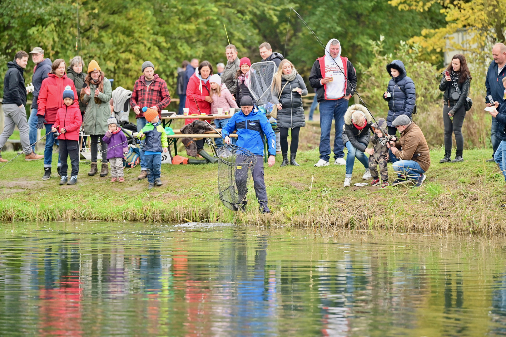 Es war ein Erlebnis! Es war ein Event für die ganze Familie. Und es ist noch nicht vorbei. Die Fischerei Müritz Plau GmbH, den meisten als Müritzfischer bekannt, hat nach dreijähriger Abstinenz wieder zum Abfischfest nach Boek eingeladen und wurde förmlich überrannt. Die Gäste kamen nicht nur aus der Müritz-Region, sondern weit darüber hinaus. Und ihnen wurde ordentlich was geboten. Nicht nur bei den beiden „Runden“ des Abfischens gab’s großes Gedrängel, viele Besucher nutzten die Chance, an den Teichen zu angeln. Vor allem Kinder schauten ganz geduldig auf die Posen und hatten teilweise auch richtiges Angler-Glück: Forellen und Karpfen bissen an und sorgten für ganz aufgeregte Knirpse, die so ganz nebenbei von den Mitarbeitern der Müritzfischer den richtigen Umgang mit den Fischen lernten.