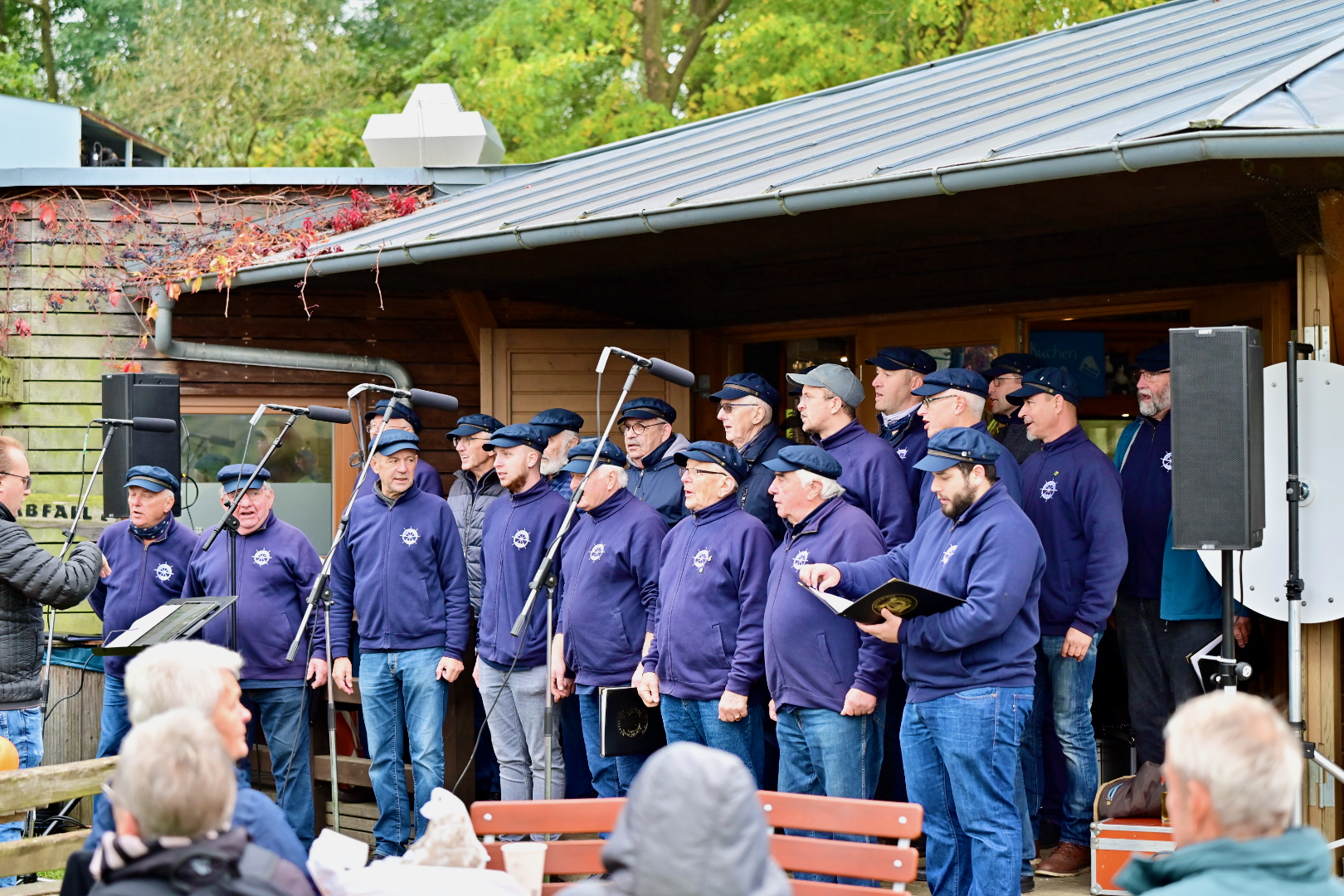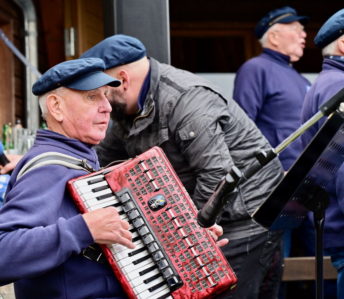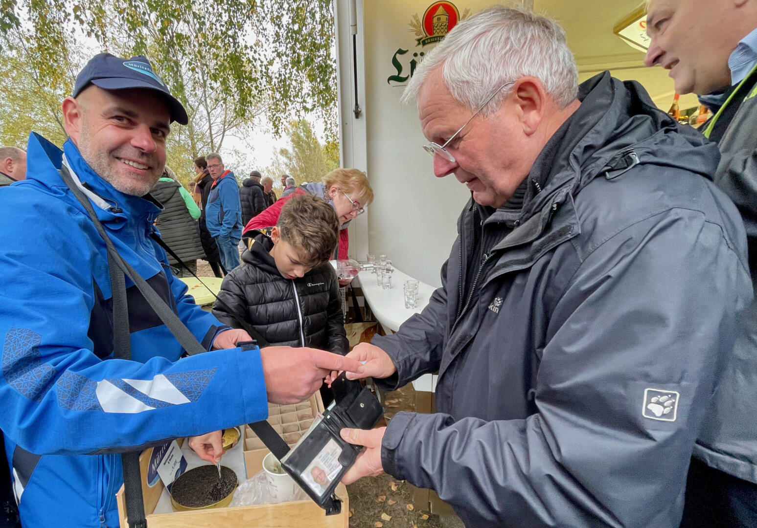 Ganz klassisch ging es auch bei Prokurist Sebastian Paetsch zu. Er war mit einem Bauchladen unterwegs. Einem sehr wertvollen. Denn Paetsch bot „Nationalparkkaviar“ an – natürlich aus der Produktion der Müritzfischer. Dazu gab’s – wie es sich für Kaviar gehört –ein Gläschen Wodka. Da passte die Musik des Shantychors aus Penzlin bestens dazu.