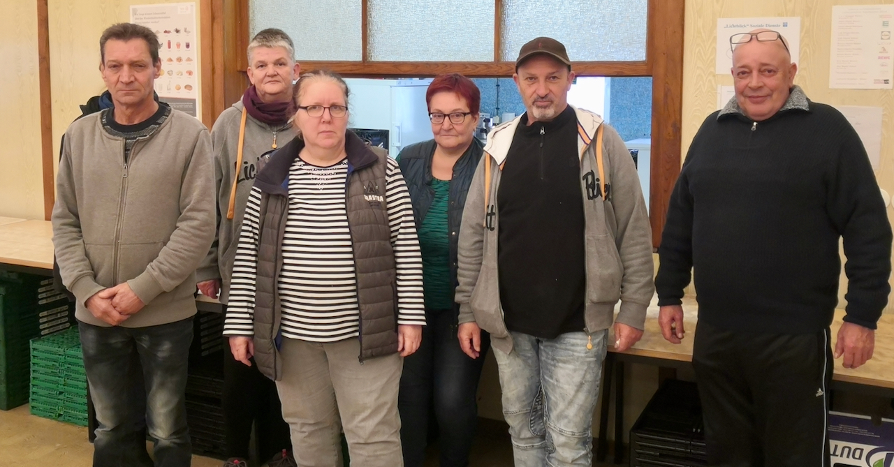 Foto unten: Ein Teil der ehrenamtlichen Helfer der Warener Tafel
