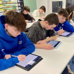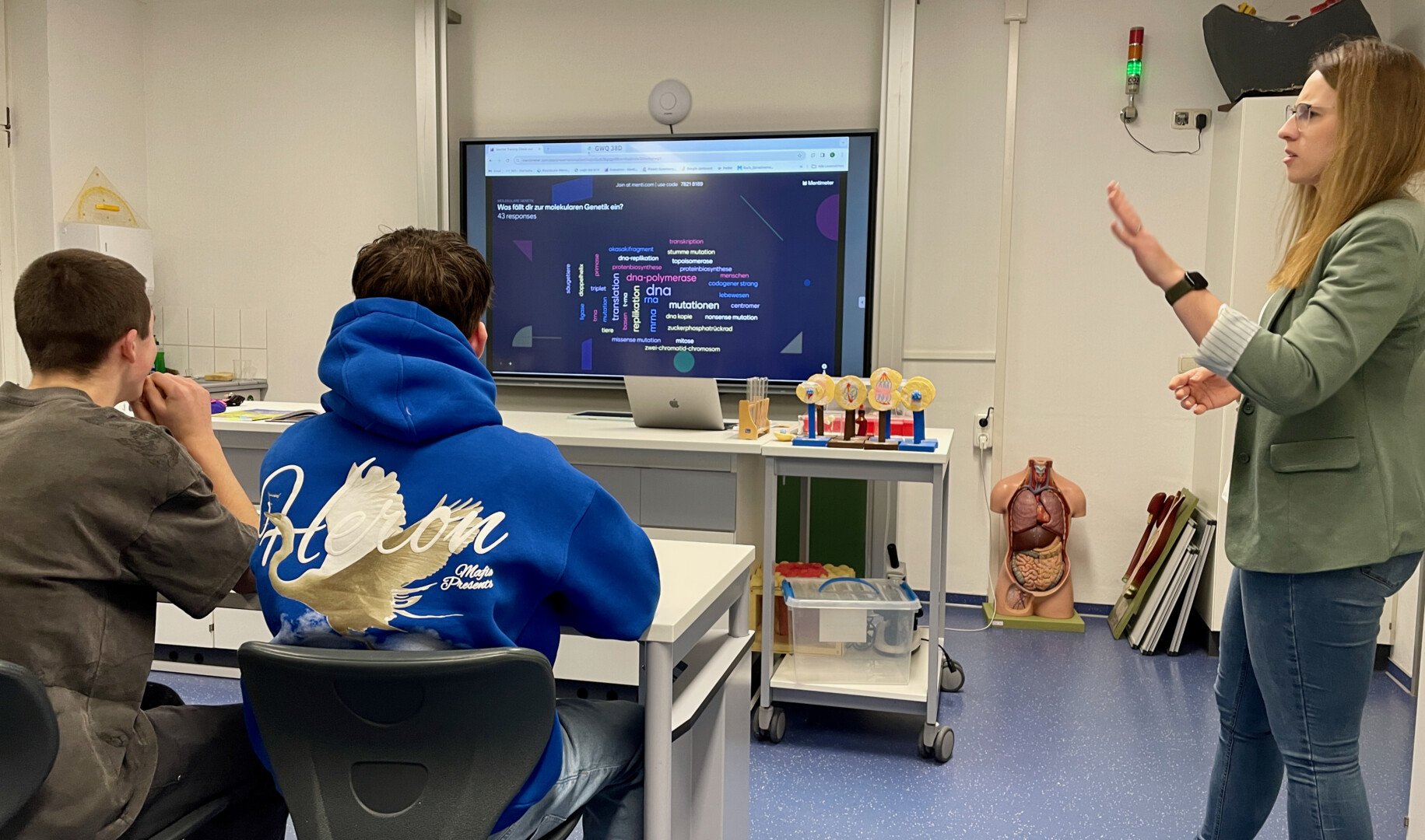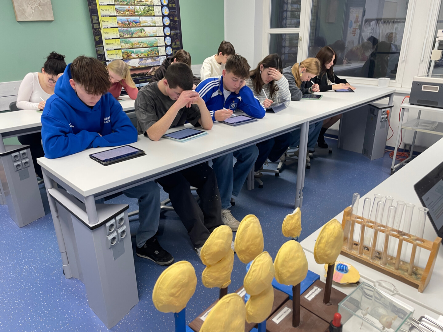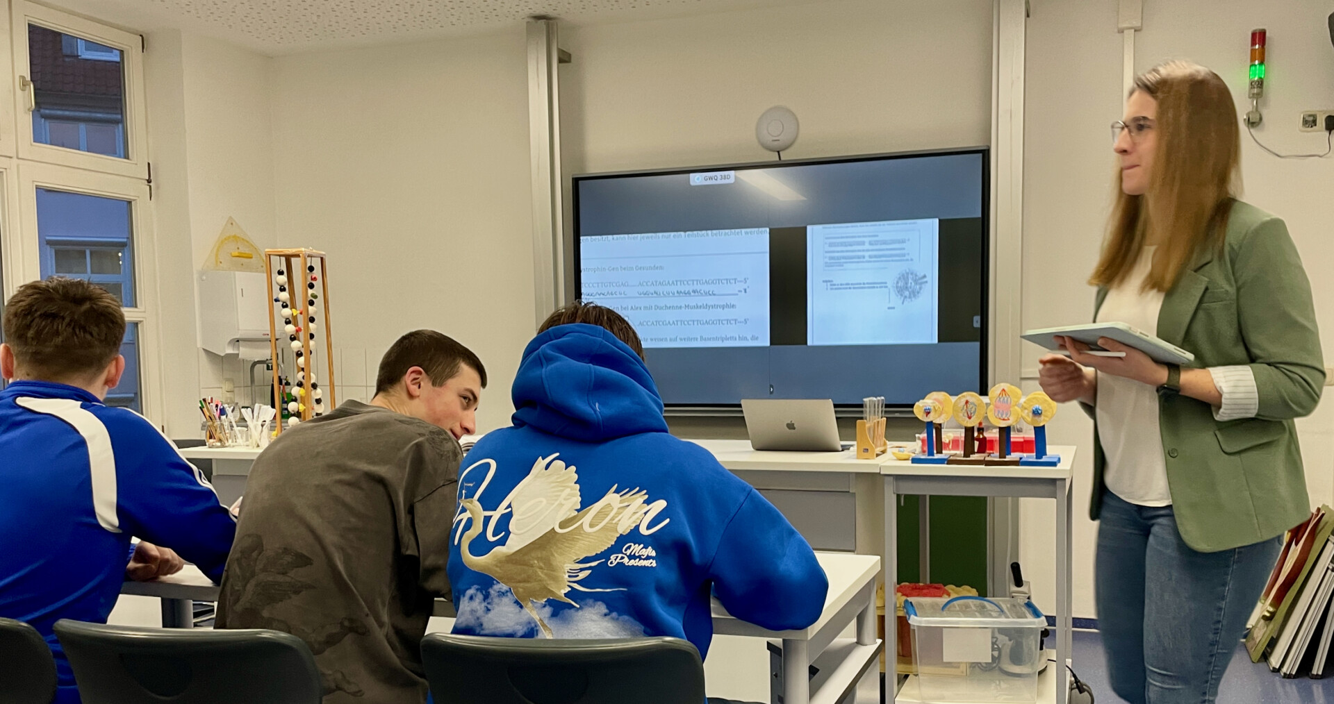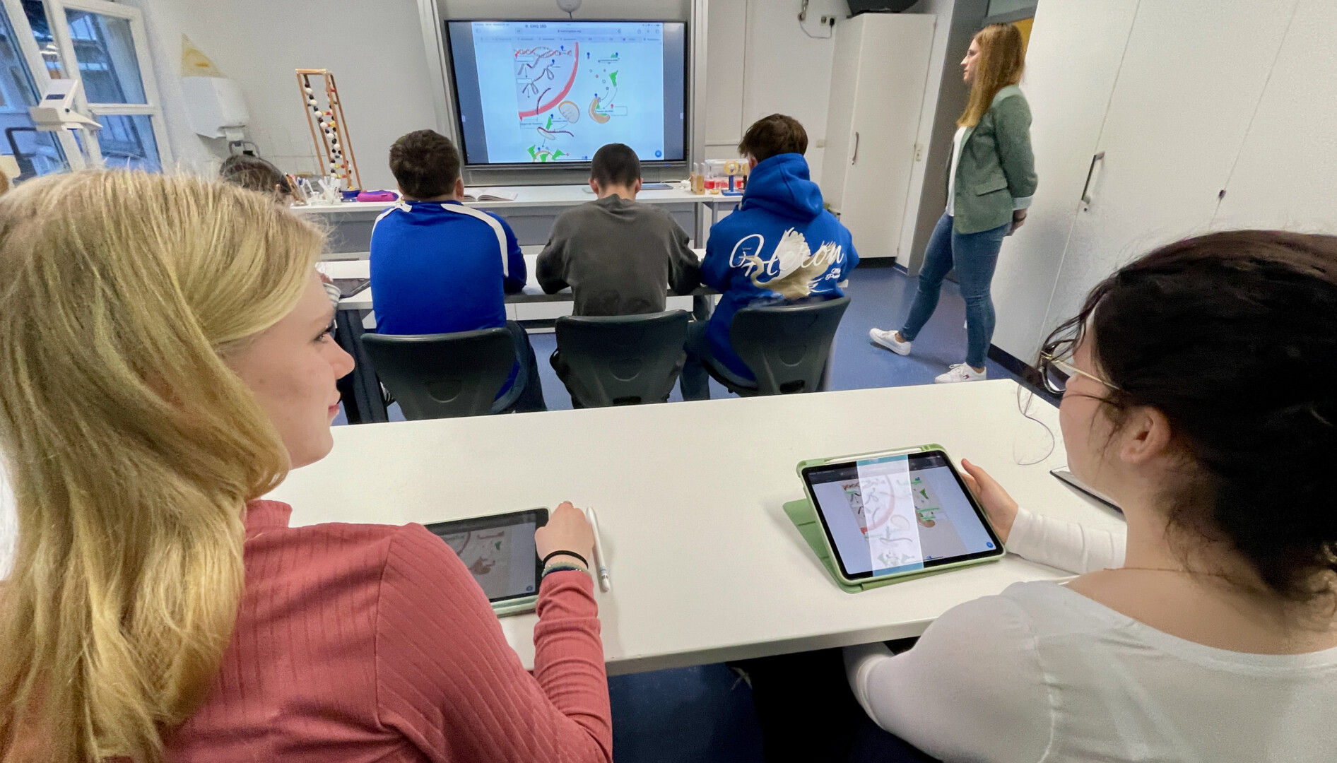Die Jugendlichen beschäftigen sich mit dem Thema Muskelschwund, verschiedene Gruppen erhalten unterschiedliche Aufgaben. Die Ergebnisse sind mit einem Klick an der Tafel oder besser auf dem Smartboard. Die Schüler können ihre Ergebnisse untereinander verschieben, sich digital austauschen und haben die Ausarbeitungen der anderen Gruppen dann auch auf ihrem Pad. „Das hat auch den Vorteil, dass kranke Schüler den Stoff, der behandelt wurde, schnell erhalten“, sagt Mario Lehmann. Und: Auch wenn das iPad mal verloren geht, ist der Unterrichtsstoff nicht verschwunden, er liegt in der Cloud. Die verloren gegangenen Pads werden gesperrt, alles, was dort gespeichert war, kann auf das Ersatz-Tablet übertragen werden.