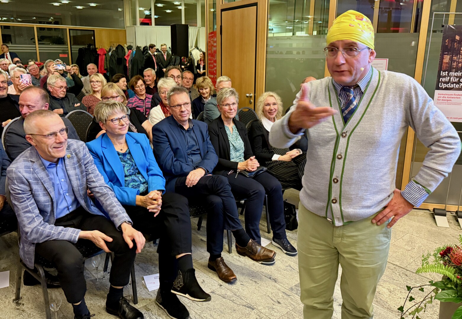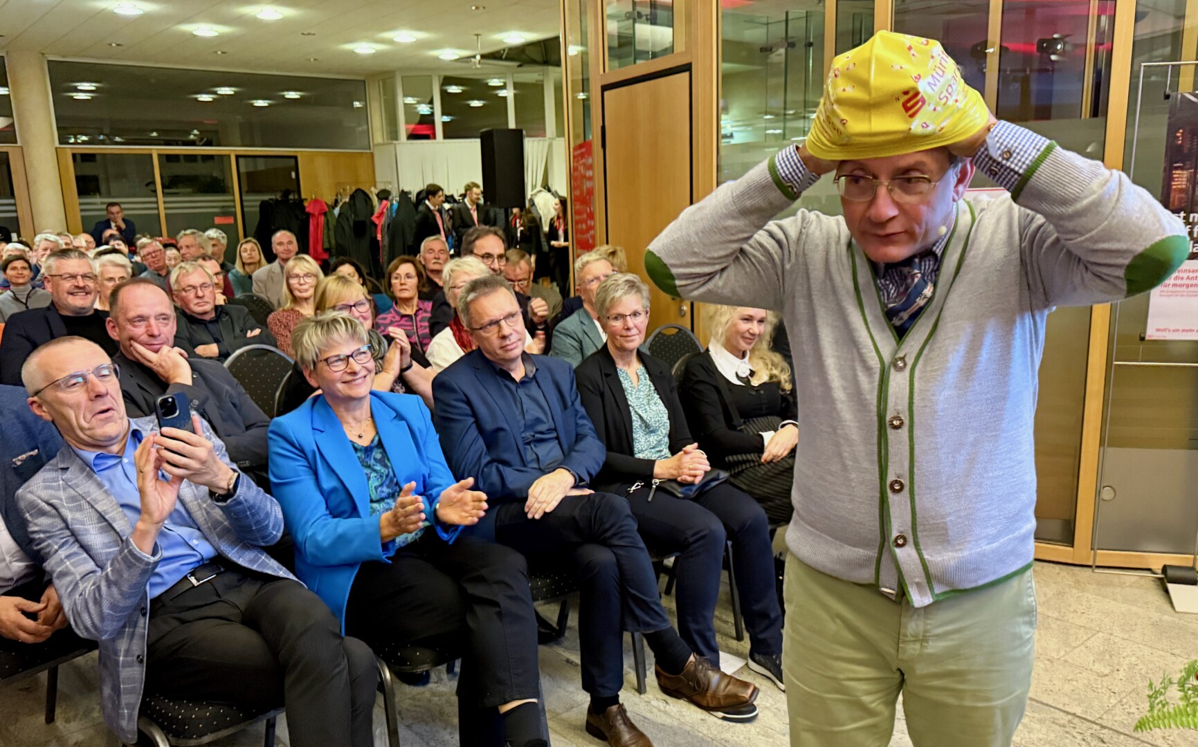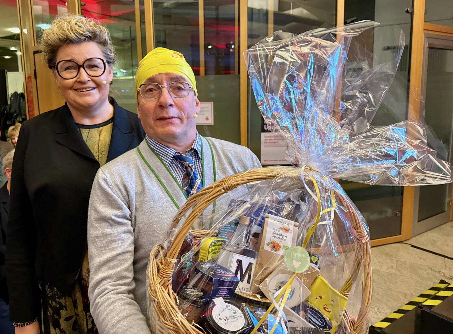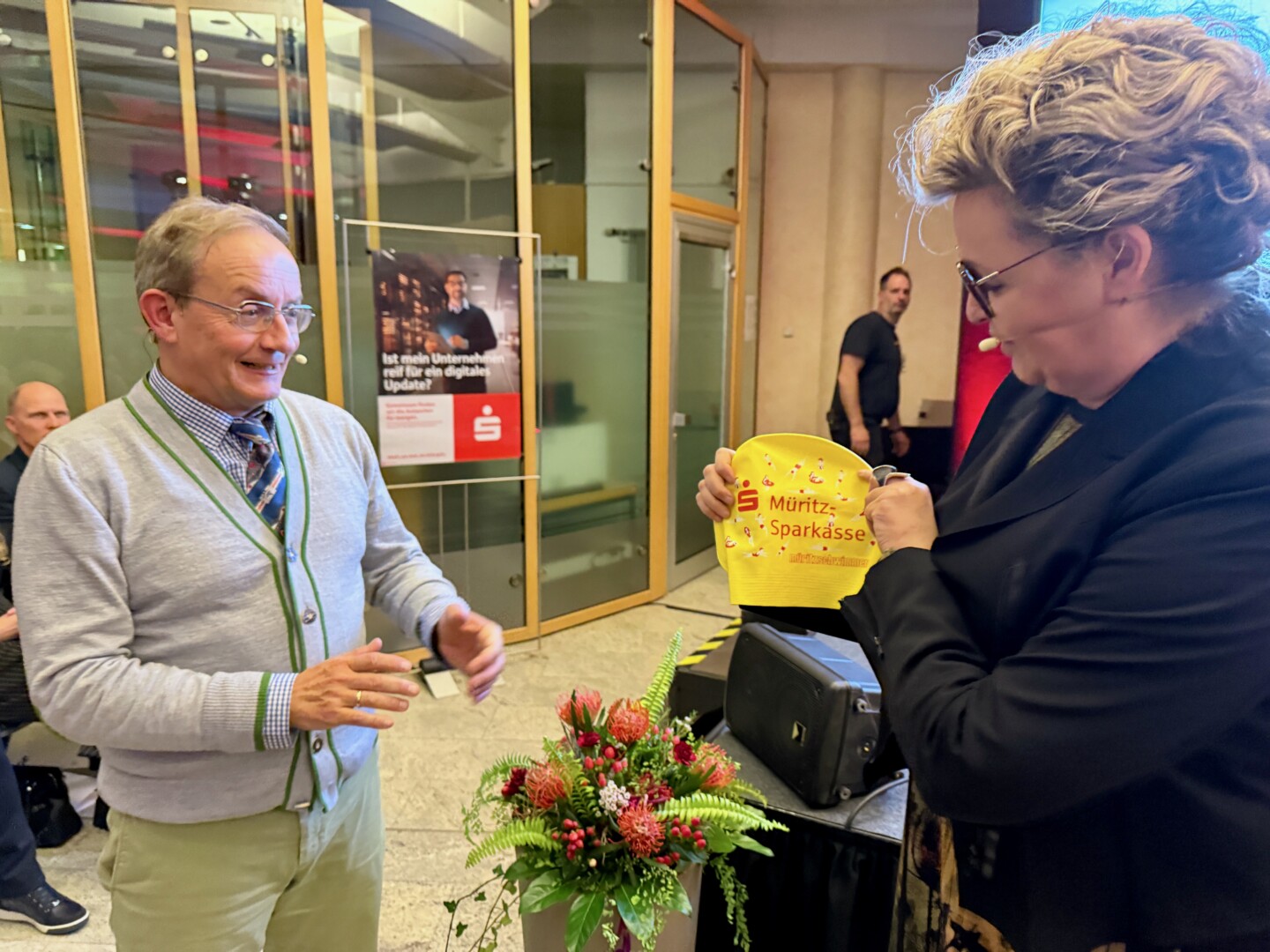 Doch egal, Wigald Boning hält durch, lässt sich auch von Erkältungen mit Fieber nicht abschrecken und will sogar nach Waren zurückkehren. Denn wie er „Wir sind Müritzer“ verriet, plant er, im kommenden Jahr beim beliebten Müritzschwimmen mitzumachen. Bestens ausgestattet ist er schon – Sparkassen-Chefin Andrea Perlick schenkte ihm eine Badekappe, die beim Müritzschwimmen bekanntlich Pflicht ist und seit Jahren von der Sparkasse für alle Teilnehmer spendiert wird. Ob die Vorstandsvorsitzende Wigald Boning begleitet, steht allerdings nicht nicht fest.