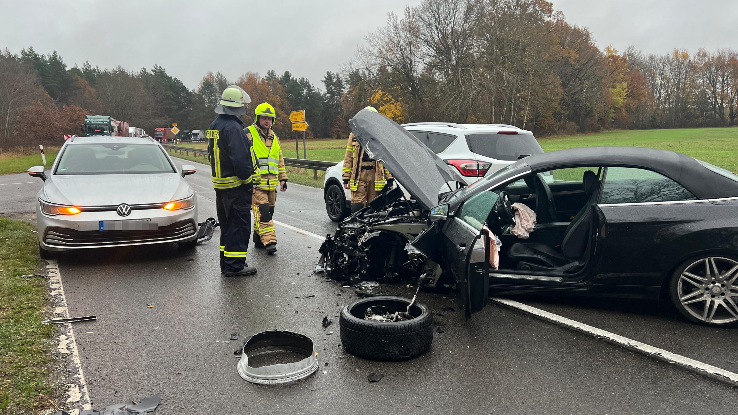 Der Sachschaden wird aktuell auf mindestens 43.000 Euro geschätzt. Die Autos der beiden direkt durch den Unfall betroffenen Fahrzeugführer mussten abgeschleppt werden. Für die Maßnahmen der Unfallaufnahme und zur Bergung war die Straße im Bereich des Unfalls heute Vormittag immer wieder teils oder voll gesperrt. Die Sperrung ist inzwischen aufgehoben.