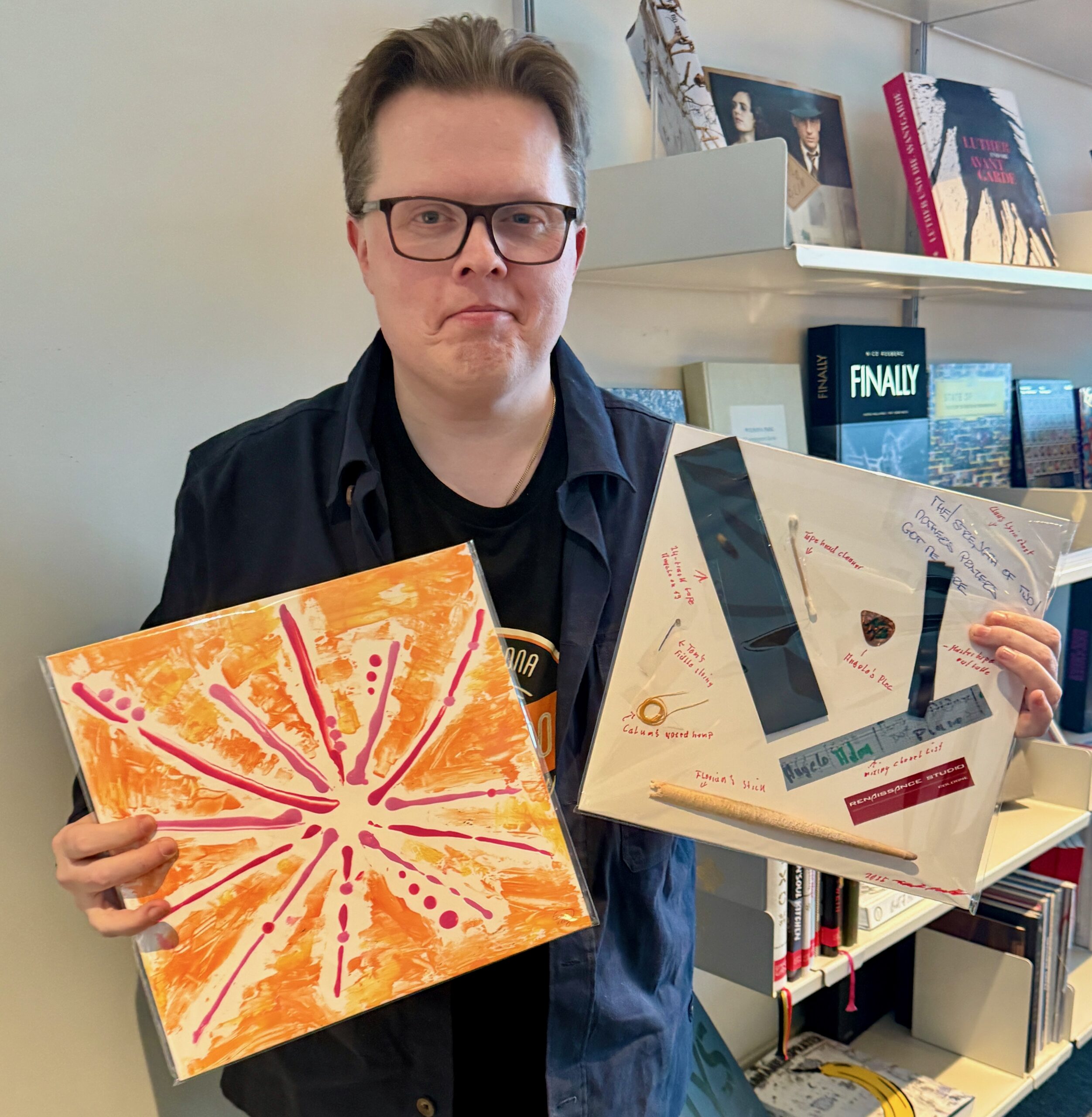 Doch die anderen gestalteten, zum Teil wirklich sehr individuellen Cover – sogar verziert mit persönlichen Gegenständen – sollten nicht einfach im Papierkorb landen. Also setzte Angelo mehr als 270 Cover auf seine Homepage und bot sie vor wenigen Tagen zum Kauf an. Innerhalb einer Stunde waren alle weg. Diese Cover hat er gestern in das Album – versehen mit einem netten Brief und Unterschrift – bei optimal media in Röbel verpackt, damit sie rechtzeitig bis zum 13. Februar bei den Käufern ankommen. Die Platten-Fans wissen übrigens selbst nicht, welches Werk sie bekommen. Das ist eine Überraschung. Angelo Kelly hat im Eifer des Gefechts übrigens ganz vergessen, sich eines der Unikate zu sichern, hofft aber, dass er noch auf anderem Weg an eines kommt. Schließlich ist er ein großer Platten-Sammler, rund 4000 Alben stehen bei ihm zu Hause in Irland.