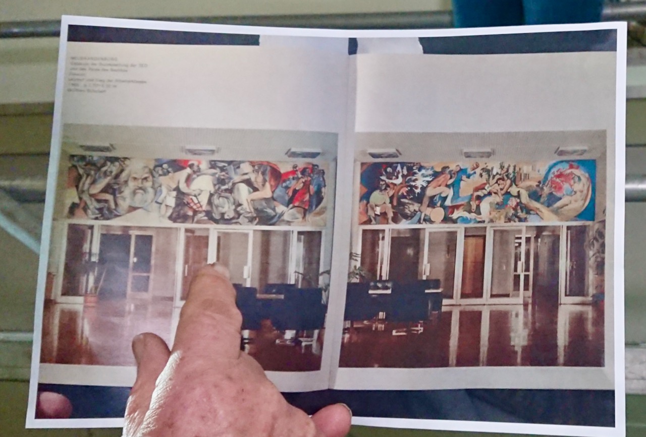 Nun wird das Rathaus saniert und im nächsten Jahr sollen hier auch Teile des Sozialamtes des Landkreises einziehen. „Ein guter Zeitpunkt, sich dem Bild erneut zu widmen“, sagte Oberbürgermeister Silvio Witt. Der 42-Jährige war zur Wendezeit erst 12 Jahre alt und ist im Umgang mit DDR-Kunst schon geschult. Witt sorgte dafür, dass das Karl-Marx-Denkmal in Neubrandenburg doch wieder aus dem Depot geholt und gegen etliche Widerstände, die es zentral wieder haben wollten, außerhalb der Altstadt wieder aufgestellt wurde.