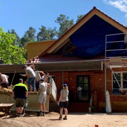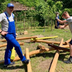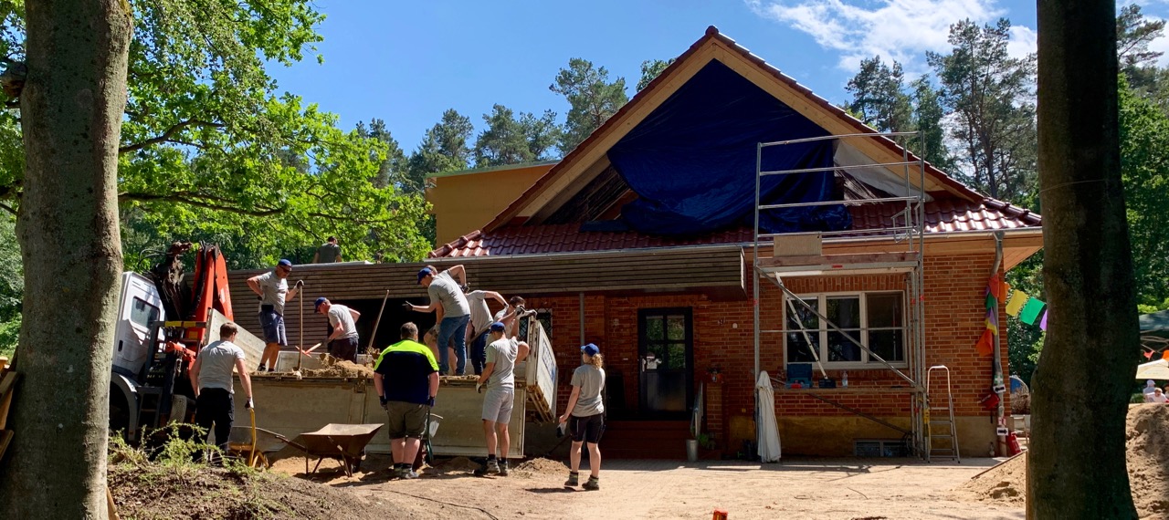 Das Drumherum der Kita soll heute Nachmittag, wenn die 60 freiwilligen Helfer wieder abreisen, fertig sein. Der Dachausbau braucht noch ein bisschen, nimmt aber auch schon Gestalt an. „Das ist ein enormer Platzgewinn für uns. Wir planen dort unter anderem einen Snoezel-Raum, in den sich die Kinder zurückziehen können“, so Katharina Boese-Schönhof, die in ihrer Einrichtung nun auch Verstärkung braucht. Erzieher, die Lust haben, im „Tannenwald“ zu arbeiten, können sich gerne bei ihr melden.