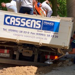 Es ist warm, richtig warm, es ist eng auf dem Grundstück, und dann sackt auch noch ein Laster ab. Trotzdem herrscht beste Stimmung auf einer außergewöhnlichen Baustelle in Waren: 60 Mitarbeiter von Smurfit Kappa – Frauen wie Männer – legen sich drei Tage lang für die Kita „Tannenwald“ in der Fontanestraße ins Zeug. Und zwar richtig. Der Dachausbau läuft bereits seit einigen Wochen, momentan schuften die Freiwilligen, die nicht nur aus Deutschland, sondern unter anderem auch aus den Niederlanden und sogar aus Texas angereist sind, von morgens bis abends auf dem Grundstück. Sie bauen Zäune. Zelte aus Weiden, einen Balance-Garten, sie tauschen Spielsand aus und, und, und. Und mitten drin der Geschäftsführer von Smurfit Kappa Deutschland, Österreich und der Schweiz, Boris Maschmann – im Blaumann. Wie alle anderen auch.