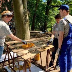 „Vor rund 17 Jahren haben wir ein Trainee-Programm für die jungen Leute ins Leben gerufen, die gerade von der Uni kommen, und ein Teil dieses Programms ist, etwas Gutes zu tun, ein besonderes Projekt zu stemmen. Das Ganze finanziert sich dann aus der Smurfit Kappa Foundation. Einige Teilnehmer sind seit vielen Jahren dabei, die ‚Neuen‘ organisieren die aktuellen Projekte“, berichtet Boris Maschmann. Er selbst hat allem Anschein nach viel Spaß, auch wenn der Schweiß tropft und die üblichen Baustellenprobleme nicht ausbleiben. „Wir sind eine tolle Gemeinschaft. Sogar Mitarbeiterinnen, die gerade Mama geworden sind, haben ihre Sachen gepackt und sind samt Familie mit von der Partie“, berichtet der Geschäftsführer. Jüngster „Helfer“ ist deshalb ein drei Monate alter Sprössling.