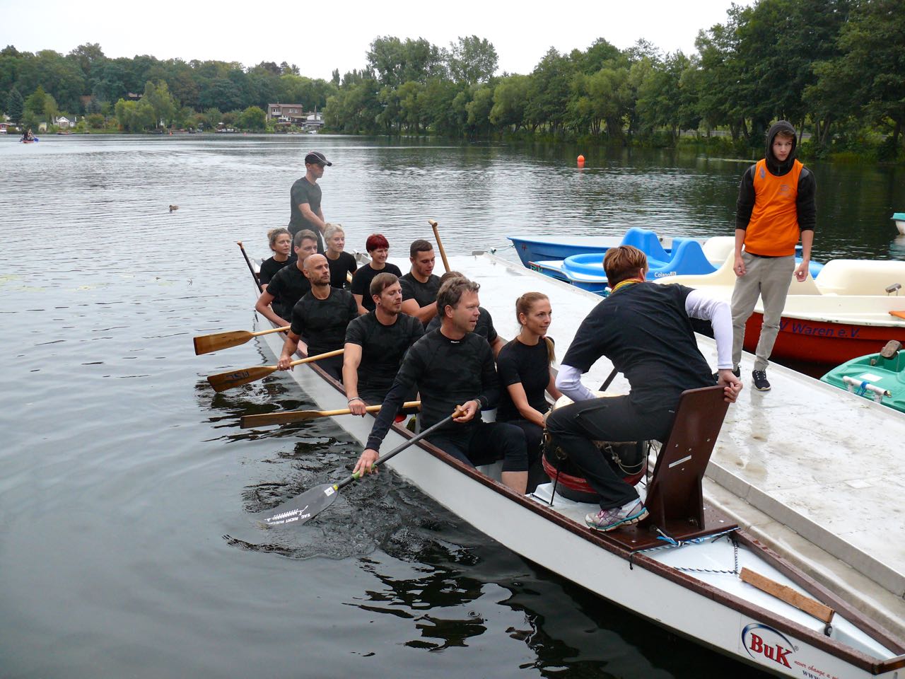 Bereits zum 7. Mal fanden gestern die Warener Stadtmeisterschaften im Drachenboot statt. Ausgetragen vom ESV Waren und der WOGEWA und bestens organisiert vom Team des ESV um Wolfgang Nicolovius und Ingo Warnke traten in diesem Jahr insgesamt zwölf Teams um Pokale und Urkunden an.