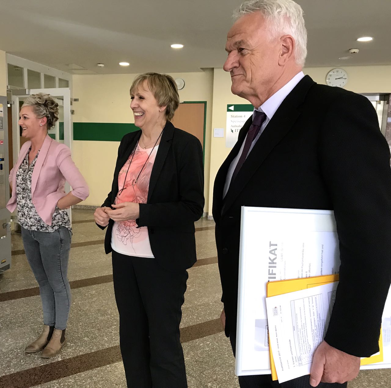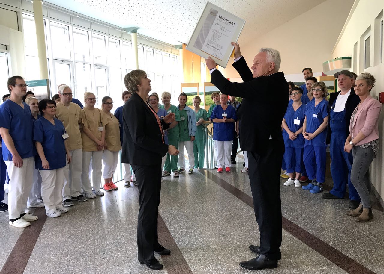 Gestern überreichte Dr. Michael Hintelmann von der Zertifizierungsfirma die Urkunde an Klinik-Geschäftsführerin Dorothea Konrad. Dabei lobte er die Mitarbeiter des Hauses, die der Zertifizierung sehr offen gegenüber gestanden hätten Und: „Das Zusammenspiel zwischen diagnostischen und therapeutischen Dienstleistungen klappt hier wunderbar.“
