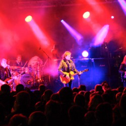 Nach einer Zwangspause während des Bühnenumbaus hatten es die Puhdys zunächst schwerer, die Konzertgäste wieder „wachzurütteln“, aber spätestens, als Maschine sie zünftig und wie man ihn kennt ins Publikum rief „Hallo Waren“, ging’s ausgelassen weiter.