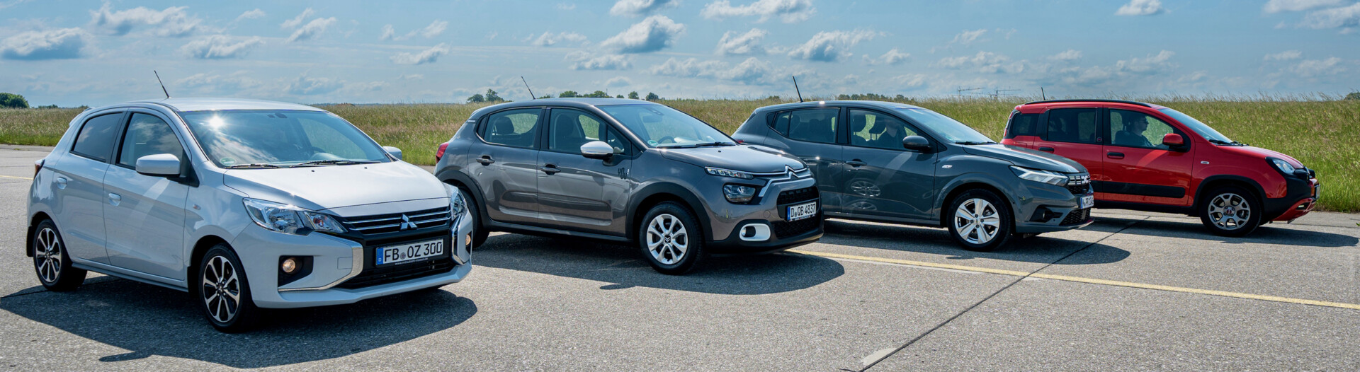 Der Citroën C3 PureTech 83 You! belegt den zweiten Platz (Note 3,2) mit harmonischen Fahreigenschaften und ausreichendem Platzangebot. Der veraltete Mitsubishi Space Star 1.2 wird Dritter (Note 4,1) aufgrund spärlicher Ausstattung – auf Klimaanlage, Radio und Zentralverriegelung wird verzichtet – und fehlender Sicherheitssysteme. Schlusslicht ist der Fiat Panda 1.0 GSE Hybrid (Note 4,4) aufgrund von Sicherheitsmängeln und unzeitgemäßer Sicherheitsausstattung. Beispielsweise hat Fiat ab dem Modelljahr 2023 den City Notbremsassistenten und die Seitenairbags vorne gestrichen.