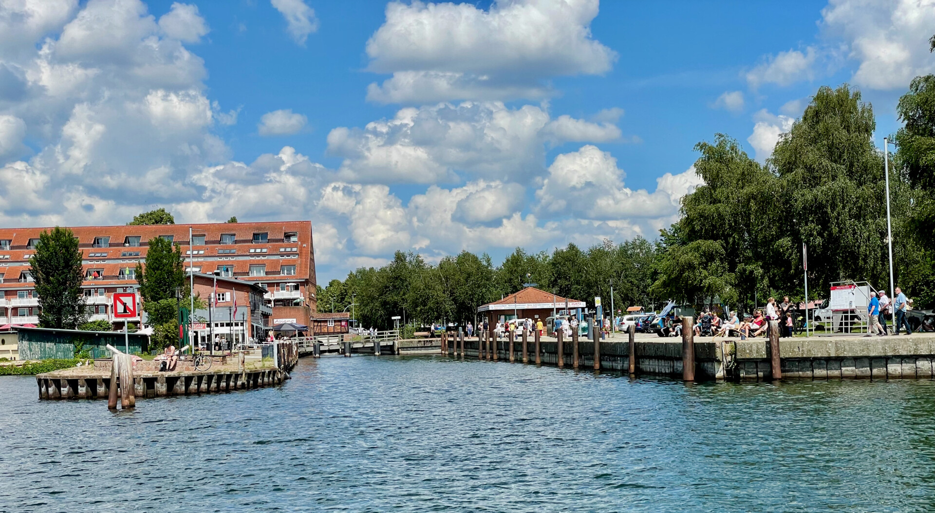 Zum Schluss wird mit den gut bekannten Auftragnehmern synchron ein Band zerschnipselt und an weiß umspannten Stehtischen mit Sekt angestoßen. Augenzwinkern, hat mal wieder geklappt. Von der Grünanlage Strrandstraße kann man dann die Spundwände und Schiffe bewundern, statt einer Sicht auf die Müritz. Auch schön. Anstelle der hölzernen Adlerskulptur entsteht ein Ver- und Entsorgungsgelände mit Schiffsdieseltankstelle und Abwasseranlage und schön ordentlich abgelegten gelben Saugschläuchen. Möglicherweise steht da längst ein AfD-Bürgermeister, der sich einer immer solideren Basis an Wutbürgern sicher sein kann. Noch ein Jahr später die letzte Rechnung. Ich überschlage dann mit endgültigen Zahlen, wieviel Geld und wieviel Umweltzerstörung unseren Honoratioren jeder einzelne der neu geschaffenen Yachtdümpelplatz in prominenter Lage wert war. Der unschuldige neue Bm hat womöglich dort auch seinen Liegeplatz, neben dem vom Alten. Mag er schon heute mit den richtigen Leuten sprechen.