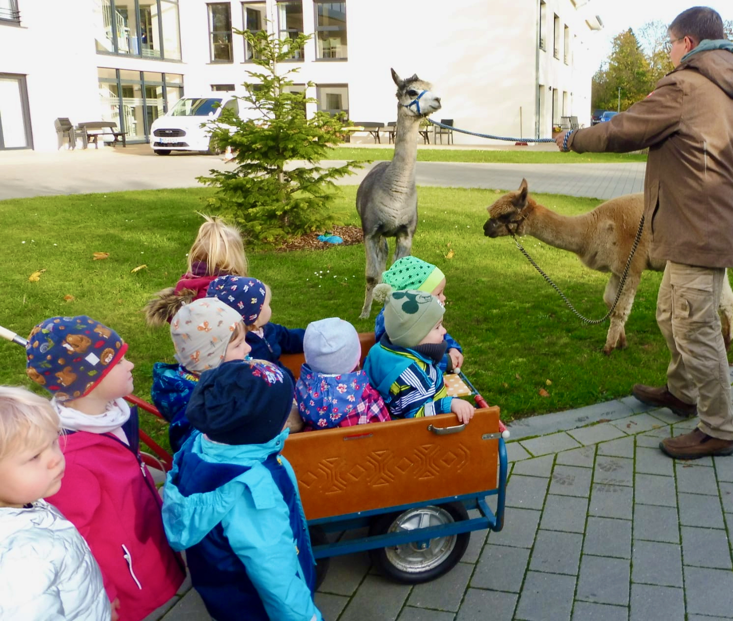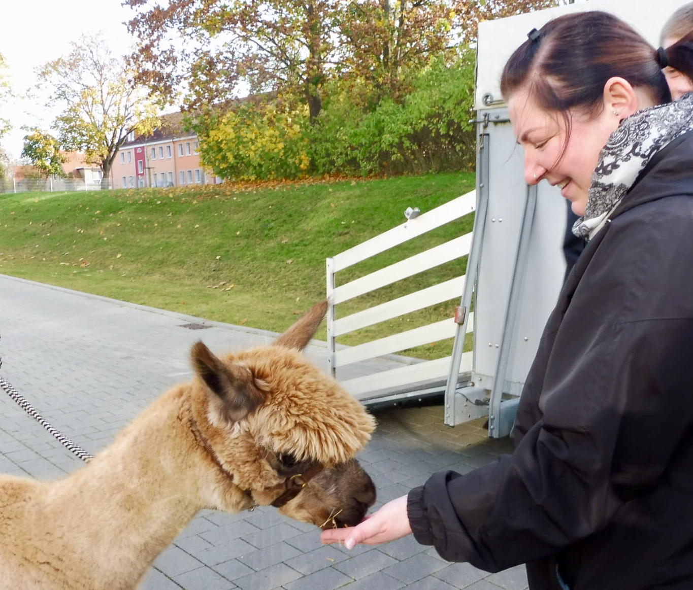 Ohne Angst und Hemmungen streichelten die Mädchen und Jungen die Alpakas, fütterten sie und waren natürlich ganz aus dem Häuschen. „Die Kinder waren dabei erstaunlich ruhig und entspannt. Wahrscheinlich hat sich die ruhige Art der Tiere auf die Kleinen übertragen“, meint Hospiz-Mitarbeiter Michael Ellert, der diesen Besuch mit organisiert hat.