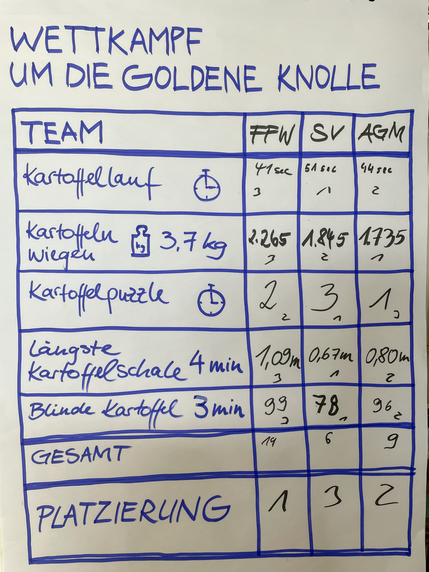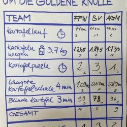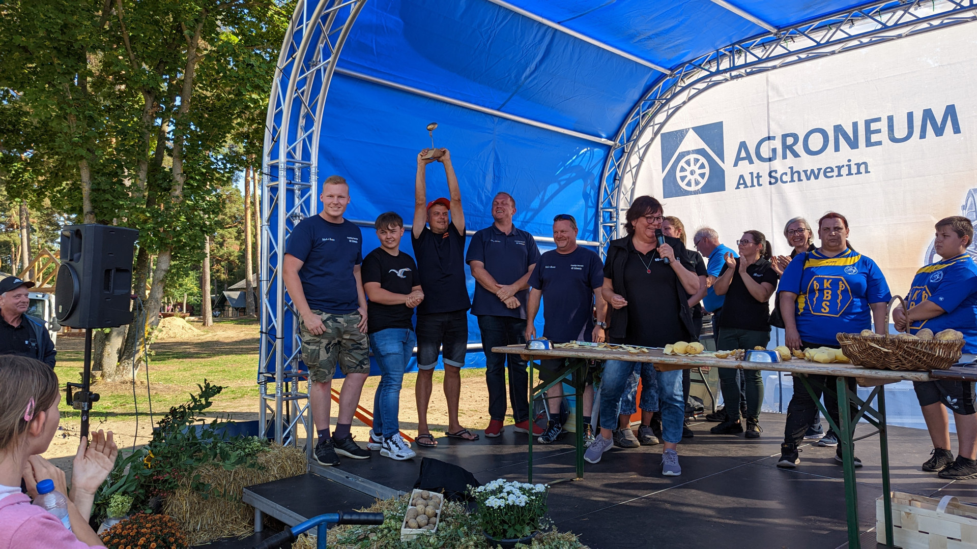 Beim großen Wettkampf um die „Goldene Knolle“ forderte dann das Museumsteam, wie auch im Vorjahr, den SV Alt Schwerin und die Freiwillige Feuerwehr Alt Schwerin in verschiedenen Disziplinen heraus. Wiegen, Schälen, Staffellauf, puzzeln und mit verbundenen Augen Kartoffeln suchen standen für die Teams auf dem Programm. Am Ende konnte die Freiwillige Feuerwehr den Wanderpokal verteidigen und die „Goldene Knolle“ erneut mit nach Hause nehmen.