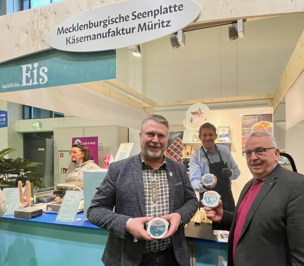 Wie bereits in den Vorjahren sind bei der Grünen Woche die Müritzfischer, die Müritz-Saga, die Käsemanufaktur Müritz GmbH, Jackle & Heidi, die Gülden Tor GmbH und das Hotel Gravelotte dabei. Nach der Premiere 2023 werben Jolu Naturkosmetik e.K. , die Darguner Brauerei GmbH und dieMuSeEn gGmbH mit neuesten Produkten und Entwicklungen in der Bundeshauptstadt. Die MuSeEn GmbH übrigens erstmals mit einem eigenen Stand und dem legendären Lanz-Bulldog aus dem Agroneum Alt Schwerin.