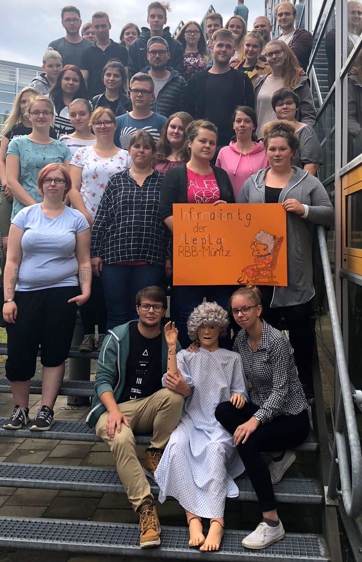 Beim Standaufbau werden die Altenpflegeschüler von den Gesundheits- und Krankenpflegeschülern des 2. Ausbildungsjahres unterstützt. Zusätzlich wird jeder Schülerstand durch einen Standpaten betreut und begleitet. Die Standpaten sind Mitarbeiter verschiedener Pflegeunternehmen der Müritz-Region.