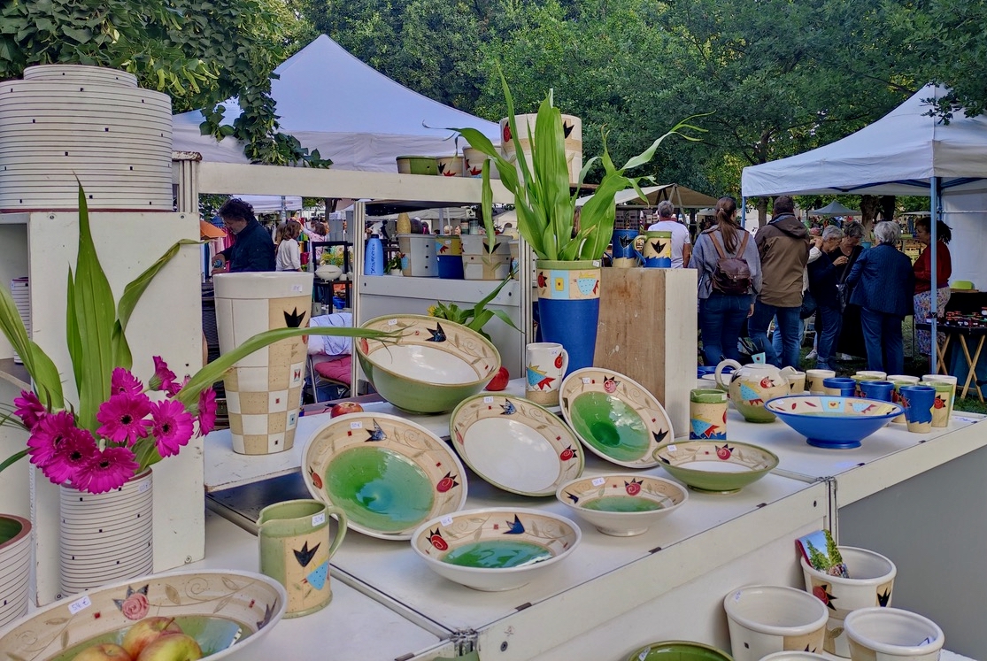 Jawoll, auch bei uns ist der Töpfermarkt ein fester Termin. Darauf freuen wir uns schon lange vorher. Ein Riesenproblem ist die Qual der Wahl. Man sagt sich jedes Mal: Ach, heute nur gucken. Das hat bisher noch nie geklappt. Und so werden zuhause die keramischen Kostbarkeiten vom Tassenschrank in ein extra Regal ausgelagert. Schon ist wieder Platz für Nachschub. Übrigens können wir Kaffee und selbstgemachten Kuchen im Zelt sehr empfehlen. In diesem Sinne viel Spaß.