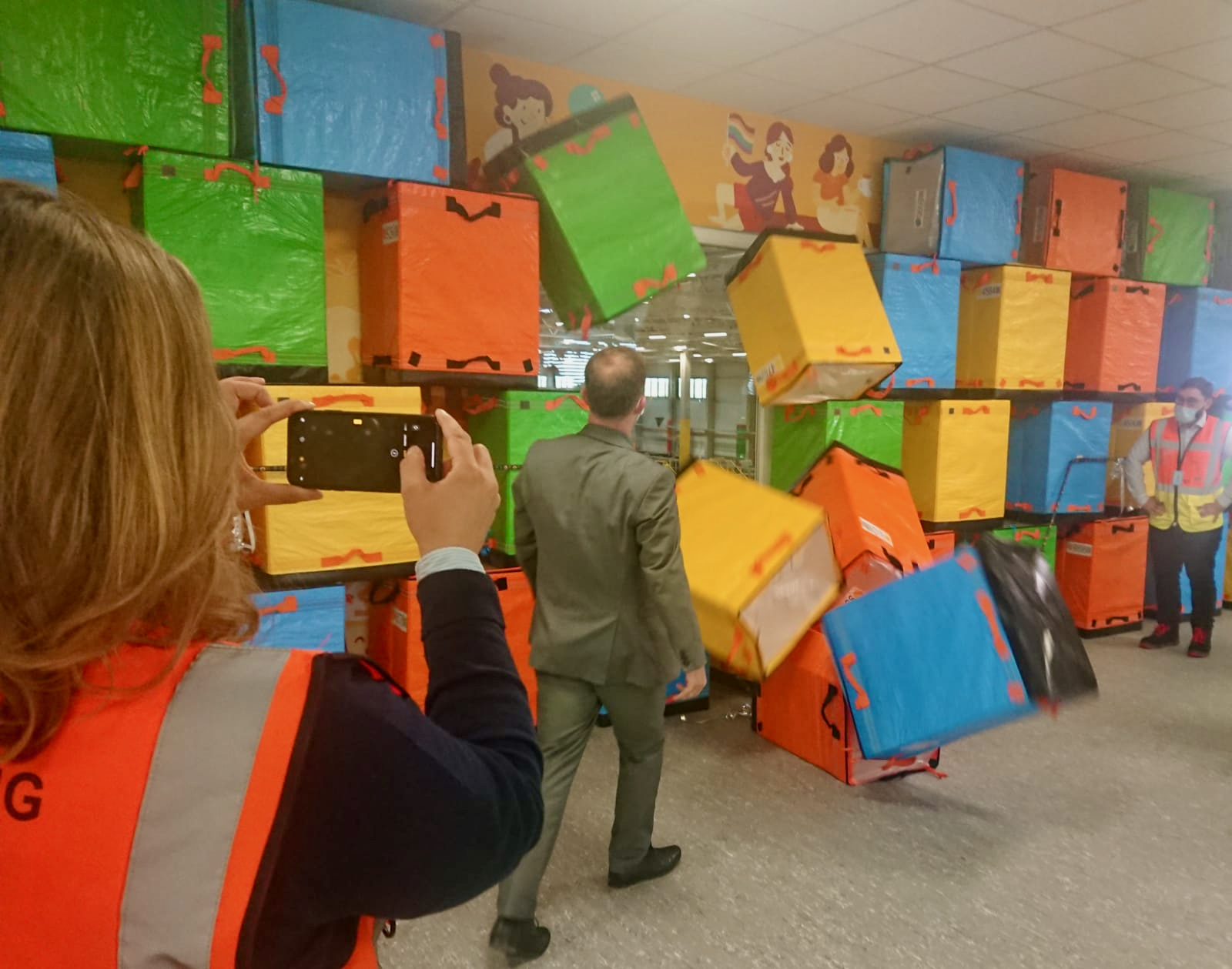Der Ruf vom Amazon scheint bei den Arbeitnehmern nicht der schlechtesten zu sein. Innerhalb weniger Wochen haben schon 180 Leute angefangen, sagte der Standortleiter Phillipp Hecht. Dreischichtig wird gearbeitet, das Meiste passierte nachts. Die Sortierer bekommen 12 Euro pro Stunde, was 2022 auf 12,50 Euro steigen soll. Höher eingestufte Beschäftigte bekommen mehr.