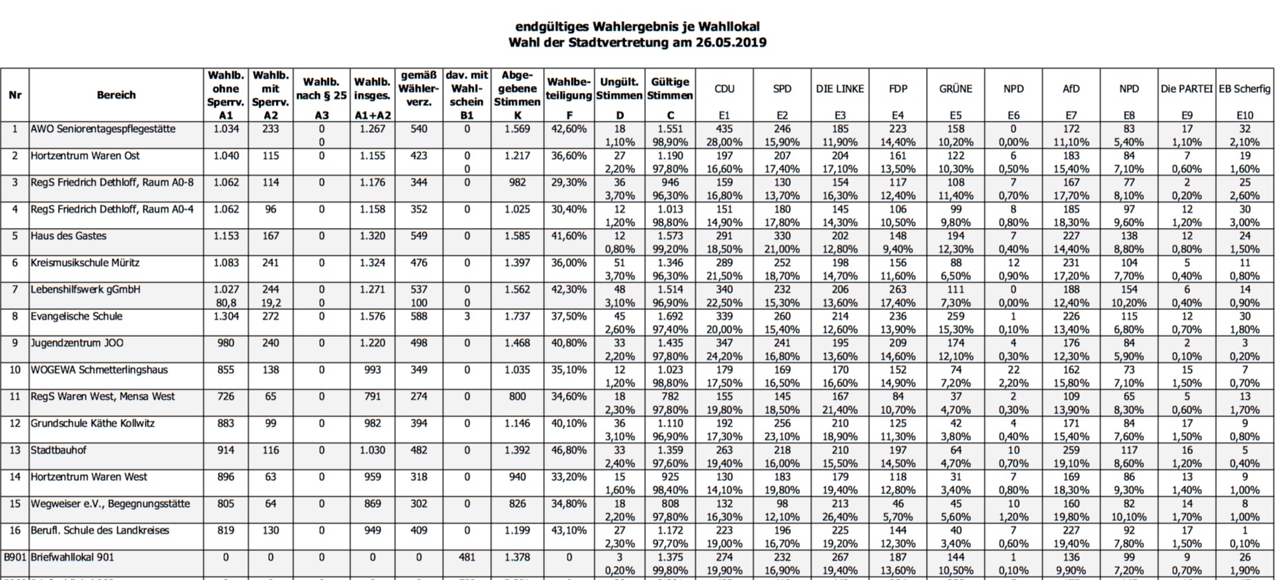 Denn laut amtlichem Endergebnis gibt es die MUG in Waren gar nicht… Dabei hat sie rund 7,5 Prozent geholt.
