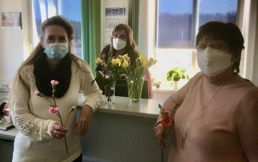 Foto: Sie gehörten zu den Mitarbeiterinnen, die heute mit Blumen und Freizeit beschenkt wurden: Regine Schuldt, Christine Lekat und Annelie Tessnow