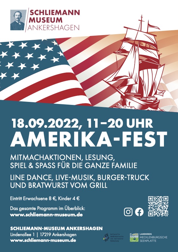 Zum Amerika-Fest lädt das Schliemann-Museum am Sonntag, 18.September, nach Ankershagen ein. Dem Kosmopoliten Heinrich Schliemann auf der Spur, der während seines abenteuerlichen Lebens durch Amerika reiste und in Sacramento eine Goldgräberbank gründete, wird der malerische Museumspark mit amerikanischem Flair vergangener Zeiten erfüllt. Ein buntes Familienfest erwartet alle Besucher von 11 bis 20 Uhr.