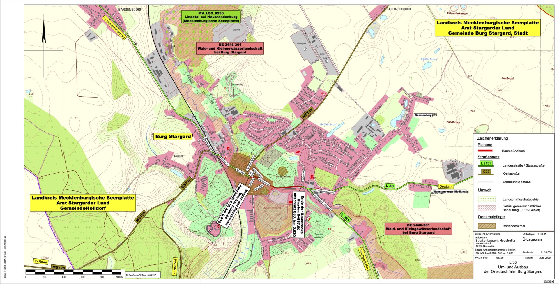 Am kommenden Montag, 17. Mai, beginnt der Um- und Ausbau der Landesstraße 33 (Mühlenstraße) in Burg Stargard. Die Arbeiten gehören zu einer Gemeinschaftsmaßnahme des Straßenbauamtes Neustrelitz mit der Stadt Burg Stargard und führen zu einer Vollsperrung bis voraussichtlich April 2022. Die Umleitung erfolgt über die L33, B96, B104 und L33.