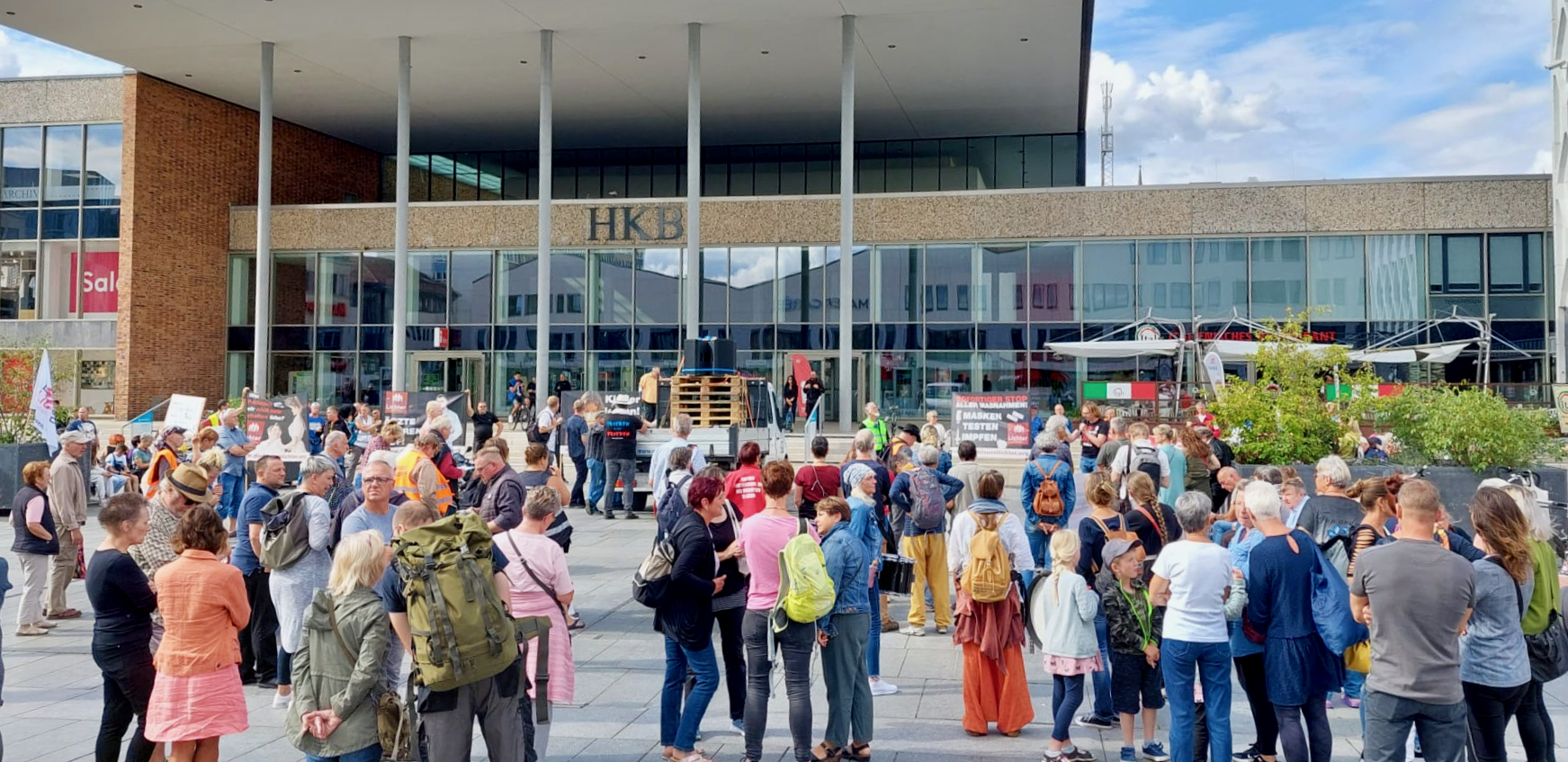 Im Vorfeld des Kreistages hatten Demonstranten vor dem HKB gegen die „einrichtungsbezogene Impfpflicht“ protestiert.