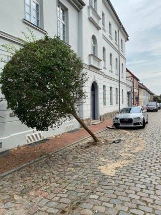 Ein 45-jähriger Fahrer eines Audi RS6 aus dem Landkreis Ludwigslust-Parchim ist vermutlich aufgrund von Unaufmerksamkeit mit seinem Wagen zu weit rechts gefahren und dort gegen einen Baum gestoßen.