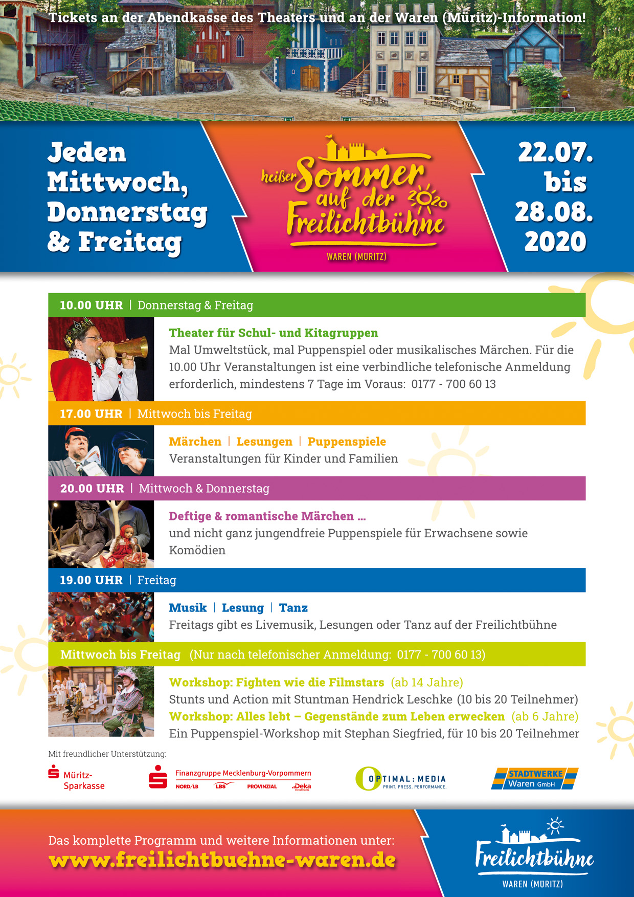 Mit Unterstützung von Sponsoren, der Stadt Waren und des Landkreises hat er ein Programm mit über 50 Veranstaltungen für Einheimische und Gäste auf die Beine gestellt. Ein Programm, das für jeden etwas bietet – für Familien und Erwachsene, für Kinder, Schüler und Jugendliche.