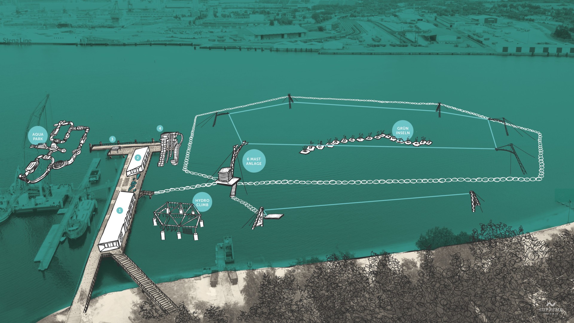 Mitte Mai dieses Jahres soll auf der Warnow in Rostock ein neuer Wasserpark eröffnen. Wassersportbegeisterten stehen dann eine Sechs-Mast- und eine Zwei-Mast-Anlage zum Wasserskifahren und Wakeboarden sowie eine SUP-Station, eine Rutsche, ein Hochseilgarten im Wasser und ein Aquapark zur Verfügung. An Land gibt es zudem ein Volleyballfeld, einen Spielplatz für die kleinen Besucher sowie eine Beachbar. Ab 2022 soll dann zusätzlich eine gastronomische Einrichtung auf dem anliegenden Steg entstehen. Die neue Anlage befindet sich auf dem Gelände des IGA-Parks, auf dem 2003 die Internationale Gartenschau stattfand. Initiator des Projektes ist die Agentur Supreme GmbH & Co. KG, betrieben wird die Anlage von der Never Stop Playing GmbH. Weitere Informationen: supieria.de/am-strand/