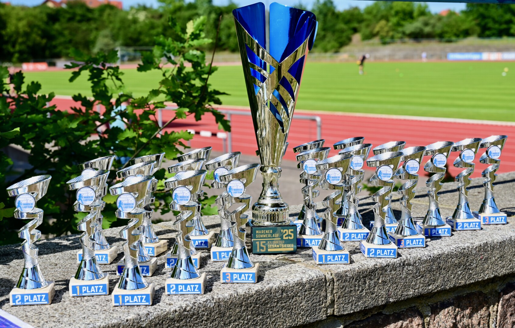 Die Fußballsaison ist vorbei, doch ruhig wird es im Müritz-Stadion nicht. Im Gegenteil. Am kommenden Sonnabend, 21. Juni, fällt dort der Startschuss zum inzwischen vierten „Warener Sommerlauf“, organisiert vom Laufteam des SV Waren 09. Knapp 200 kleine und große Sportler haben sich schon angemeldet, weitere Anmeldungen sind möglich. Angeboten werden verschiedene Strecken – 2 Kilometer, 5 Kilometer, 10 Kilometer und 15 Kilometer. Zudem gibt es einen Bambini-Lauf über 400 Meter, die kleinen umrunden also einmal das Stadion. Für alle Kleinen gibt es natürlich Medaillen und Urkunden. Das Organisationsteam um Jens Boldt wirbelt schon seit vielen Wochen, damit der „Warener Sommerlauf“ ein tolles Event für die ganze Familie wird – inklusive Rahmenprogramm. Besonders freuen sich die Veranstalter, dass es in diesem Jahr richtig schicke Pokale und tolle Medaillen gibt. Möglich wurde das aber nur durch die Hilfe von einheimischen Firmen.