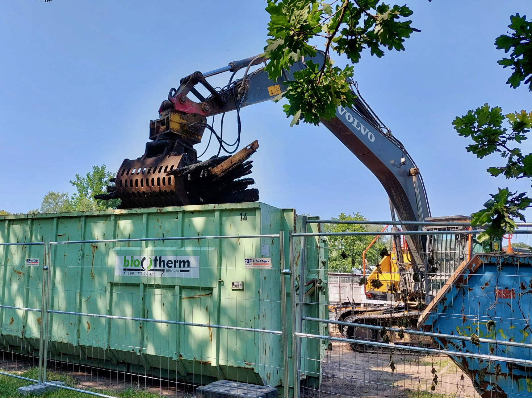 Nach dem Großbrand in der Bootsschuppen-Anlage Anfang Mai in Neubrandenburg haben endlich auch dort Aufräumarbeiten begonnen. Ein Bagger hat in dieser Woche verkohlte Holzbalken und Trennwände, aber auch Metalldächer und andere Reste „gefunden“, gehoben und in die jeweils passenden Container geworfen. Drei verschiedene Behälter wurden hinter Bauzäunen hingestellt. Nach und nach werden zudem weitere Reste, wie Kunststoffe, abgeräumt, wenn sie von oben greifbar scheinen. Neben den zerstörten Schuppenreihen wurde zudem ein Haufen Rasen abgetragen, weil der mit Asbestfasern von Asbest-Dachplatten verschmutzt war. Für diese Anfangsarbeiten werden etwa 40 000 Euro an Kosten veranschlagt. Diese will die Stadt zunächst auslegen und später Pächtern in Rechnung stellen.