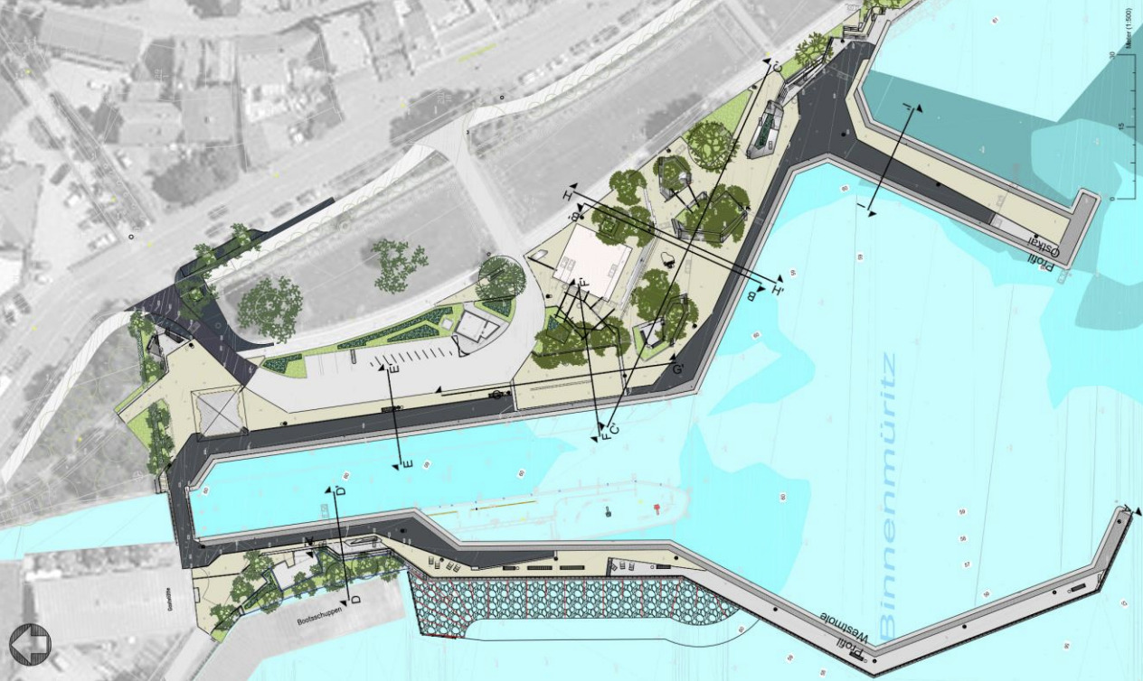 Was noch nicht thematisiert wurde, sind die Auswirkungen. Die Sicht auf die glitzernde Müritz würde weiträumig verbaut. Wahrscheinlich stört das niemanden, denn die Skyline aus rostigen Spundwänden, dümpelnden, billig zusammengeschweißten Fahrgastschiffen, Entsorgungseinrichtungen für Abwasser und eine Tankstelle für Schiffsdiesel wird ja auch richtig schön, vor allem, wenn an allem gespart werden wird. Um die Diskussion auf das wirklich wichtige zu lenken, werden bestimmt Maste mit Flüstertüten als Möwenvergrämungsanlage gebaut. Die kosten ja mit Soundchip und Radioverstärker nur 10.000 Euro. War da nicht schon mal was?