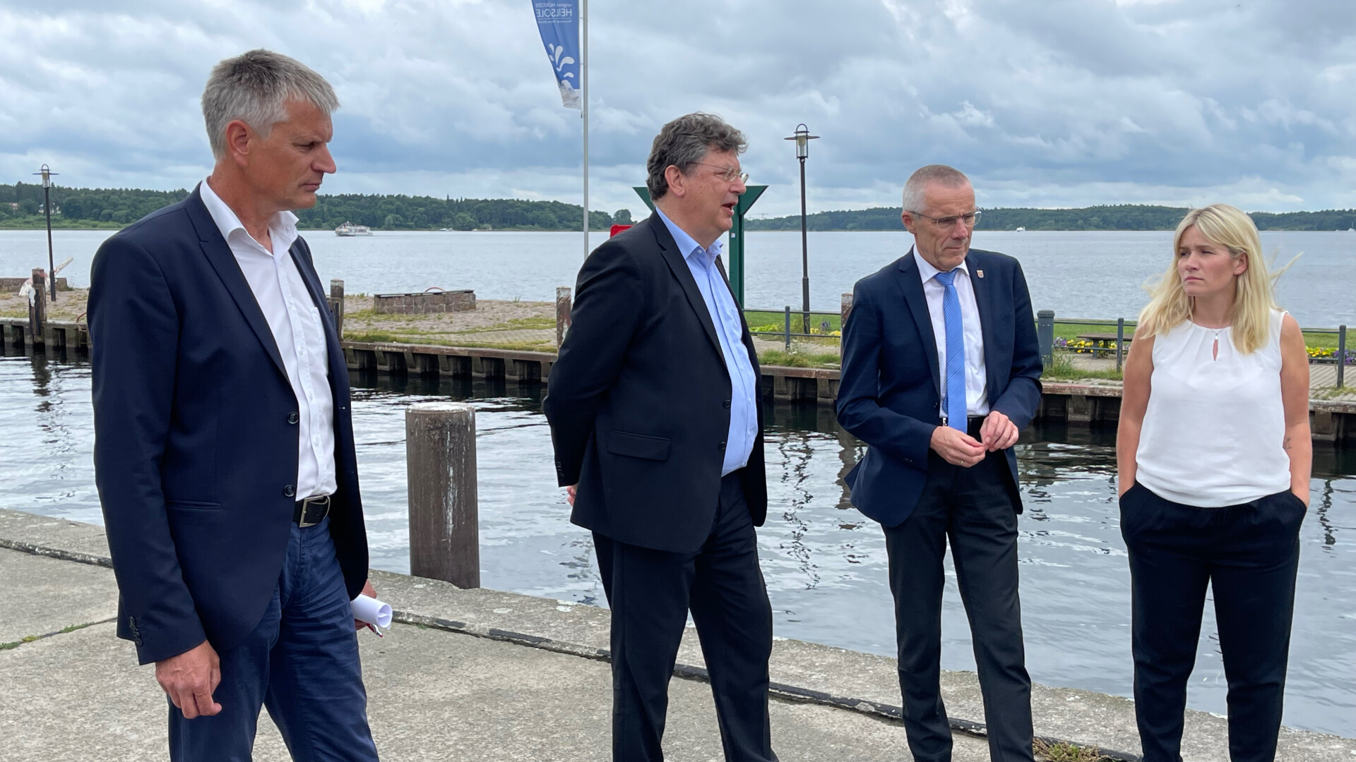 Den jetzt vorliegenden Planungen zufolge soll der Ausbau 9,2 Millionen statt der zuletzt fast 12 Millionen Euro kosten. Allerdings ist schon lange klar, dass sich das Land nicht – wie in den vergangenen Jahren angekündigt – mit bis zu 90 Prozent Förderung beteiligt, sondern im Höchstfall mit fünf Millionen Euro. Aber auch dieses Geld steht derzeit in der Schwebe. „Zum einen plant der Bund massive Kürzungen des Förderprogramms Gemeinschaftsaufgabe Infrastruktur, gegen die wir als Land scharf intervenieren. Zum anderen enthalten die Pläne einige Dinge, die so nicht nötig sind“, sagte Meyer gestern vor Ort. Damit meint er unter anderem die neue Ostmole. Die wollte die Stadt ursprünglich gar nicht, sondern hat sie nur nach einer Forderung des Wasser- und Schiffsfahrtsamtes geplant. Das will der Stadt die Wasserfläche nämlich nur verkaufen, wenn das Gebiet der Steinmole sichtbar eingegrenzt ist. Also musste die Ostmole her, die man gar nicht unbedingt braucht, wie Bürgermeister Norbert Möller zugibt. Kostenpunkt der Ostmole: rund zwei Millionen Euro. Geld, das man sparen könnte. Wenn, ja wenn alle Beteiligten sich endlich an einen Tisch setzen. Dazu will der Wirtschaftsminister vermitteln.
