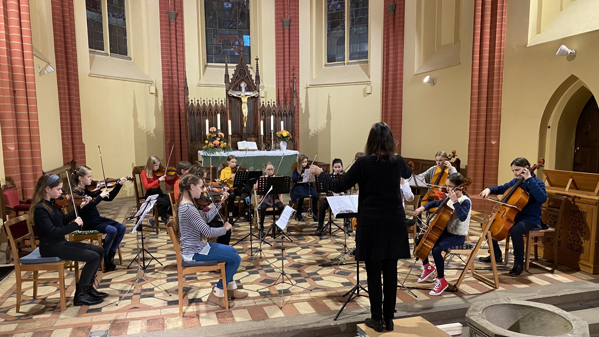 30 Kinder und Jugendliche musizierten am 23. Oktober beim Wandelkonzert in den drei Warener Stadtkirchen und beschenkten die Besucher mit musikalischer Wärme und Licht. Um 17 Uhr begann das Wandelkonzert in der Heilig-Kreuz-Kirche mit dem Streichtrio unter der Leitung von Juliane Ausmeier. Außerdem spielte die Gitarristin Celina Klöhn. Orgelschüler Erik Mörke und Kantorin Christiane Drese rahmten das Programm mit Klängen der Jehmlich-Orgel von 1967.