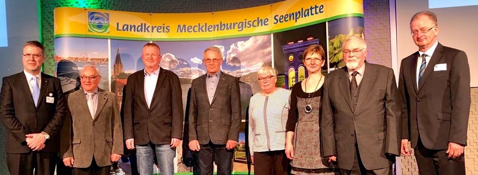 Beim Bürgermeisterempfang des Kreistagspräsidenten Thomas Diener und des Landrates Heiko Kärger sind am Wochenende sieben engagierte Einwohner des Landkreises Mecklenburgische Seenplatte geehrt worden. Eine der Ausgezeichneten ist die Röbelerin Gundula Schwarz (auf dem Bild 5.v.l.).
