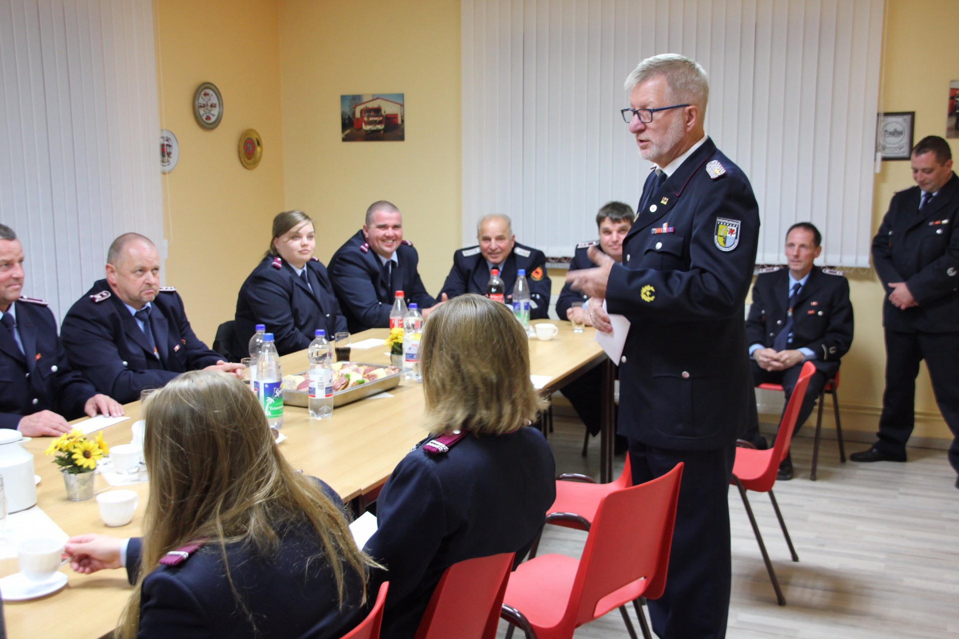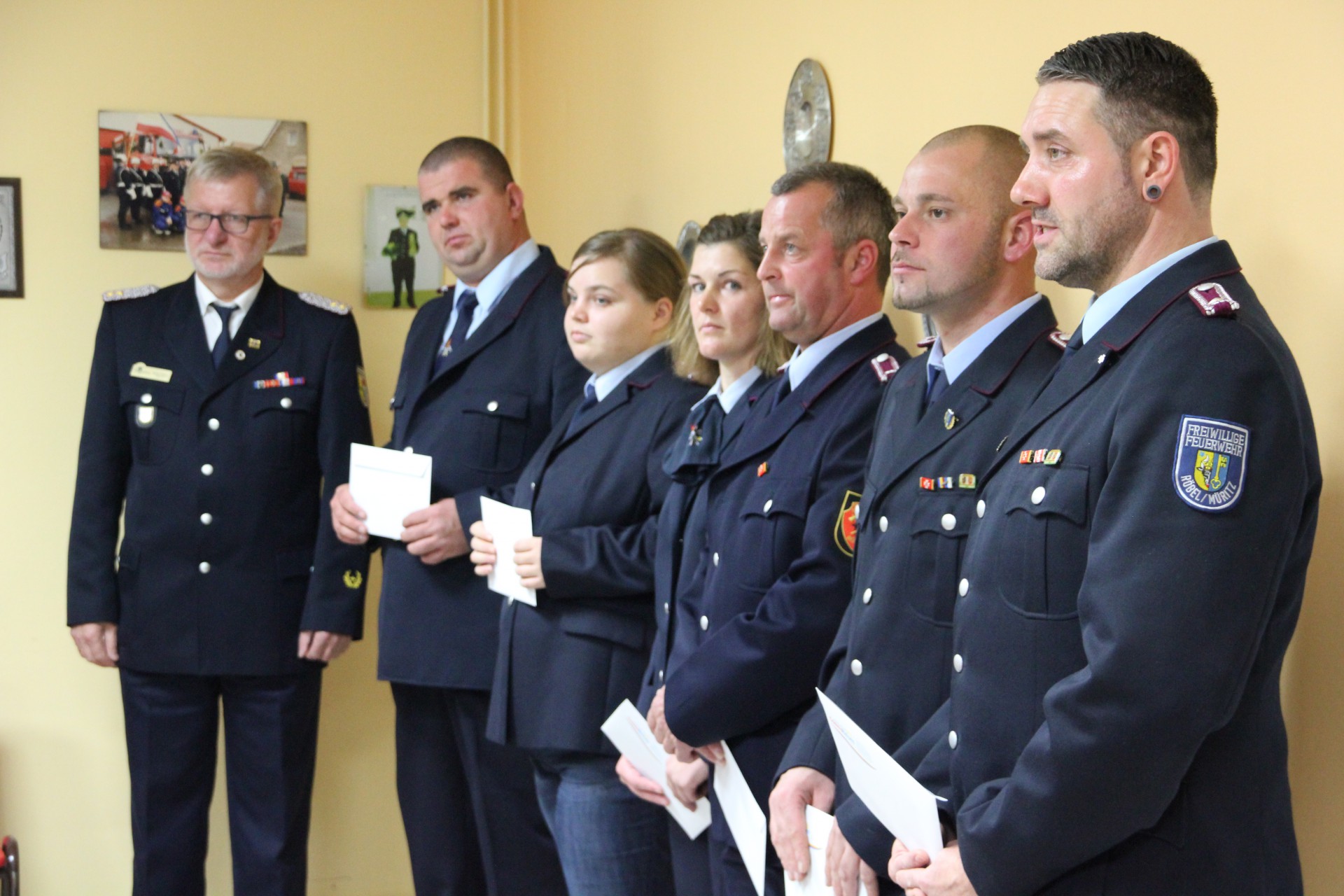 Die Auszeichnungen nahm Kreisbrandmeister Norbert Rieger vor. Rieger bedankte sich bei René Treppner und Andy Lenkeit von der Freiwilligen Feuerwehr aus Röbel und Maria Christoph, Wiebke Loskant, Maik Schrötter und Sören Schmidt von der Freiwilligen Feuerwehr Bütow stellvertretend für alle Kameraden der Wehren mit einem Geschenk der Stiftung.