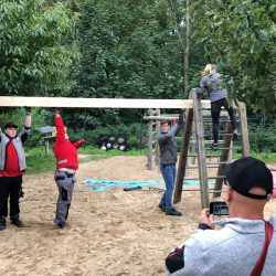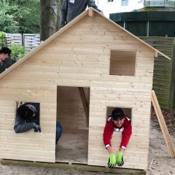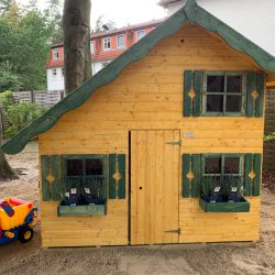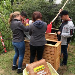 Die Auszubildenen haben in knapp zwei Tagen unter anderem zwei Spielhütten gebaut, eine Wippe installiert, Hochbeete für Kräuter aufgestellt, andere Spielgeräte wieder in Schuss gebracht und sich am Haus um den Sockel kümmern, der nicht mehr so ganz in Ordnung war.