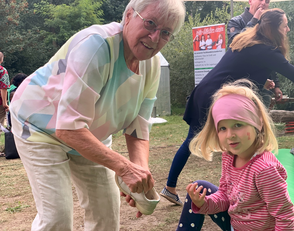 Richtig überrascht und erfreut zeigte sich gestern Helga Richter (Foto rechts). Die 85-Jährige war von 1959 bis 1976 Leiterin der Kita in der Fontanestraße und hat sie jetzt das erste Mal seit mehr als 40 Jahren wieder betreten. „Sehr schön, was den Kindern hier geboten wird“, meinte die rüstige Seniorin, die auch heute noch sehr gerne mit Kindern umgeht.