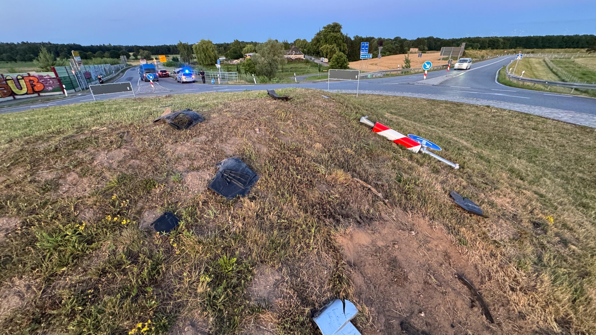 Zu einem spektakulären Unfall mussten die Polizeibeamten aus Röbel gestern Abend ausrücken. Vor Ort angekommen trauten sie ihren Augen nicht. Der Fahrer eines Opel kam aus Richtung Plau am See und durchfuhr den ersten Kreisverkehr nahe der Autobahn 19 noch ganz normal. Offenbar beschleunigte der 70-jährige Mann sein Auto, überquerte die Autobahnbrücke und fuhr folglich geradeaus auf den Kreisverkehr und die dortige Verkehrsinsel zu. Der Opel schlug in der Verkehrsinsel ein, hob ab und landete auf der anderen Seite des Kreisverkehrs auf einer Leitplanke.