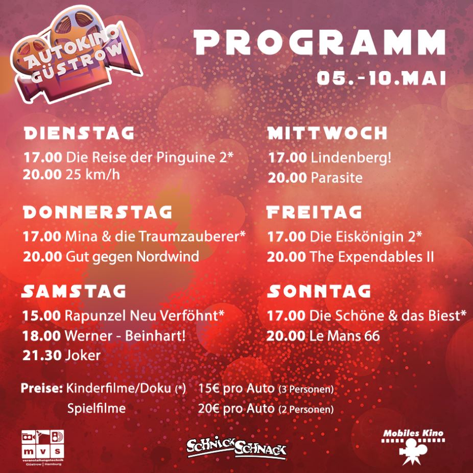 Güstrow hat ein Autokino und auch einige Müritzer haben es in den vergangenen Wochen bereits genutzt. Hier nun der Plan für die kommenden Vorstellungen, die wir auch täglich in unserem Veranstaltungskalender auf der Homepage veröffentlichen.