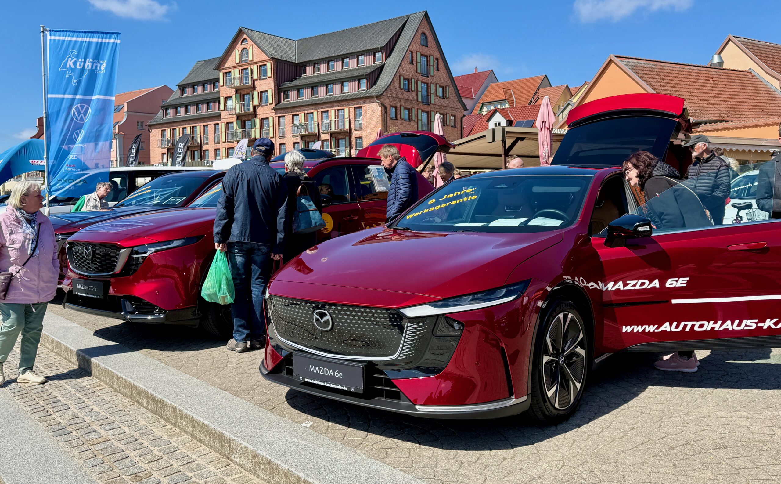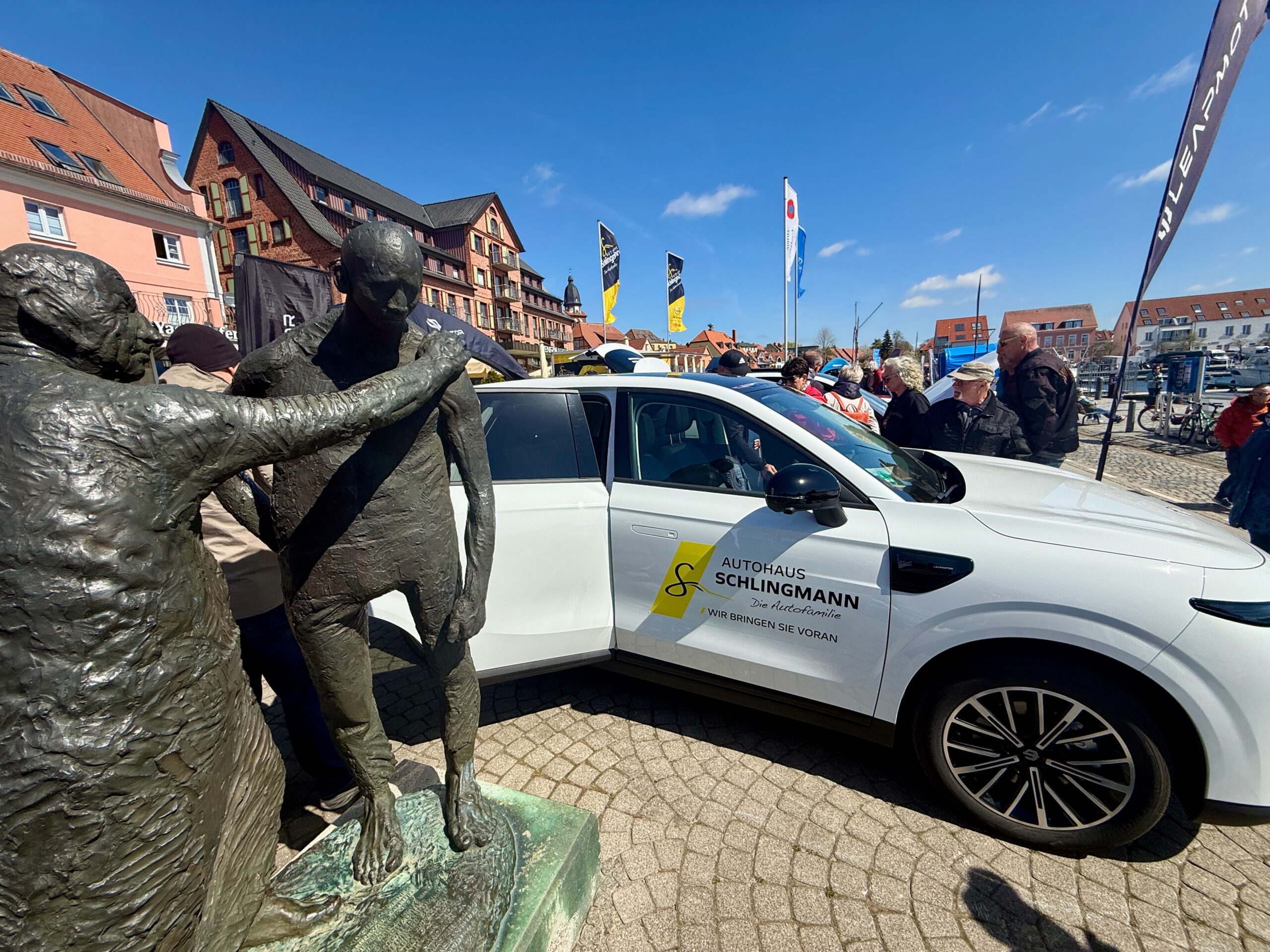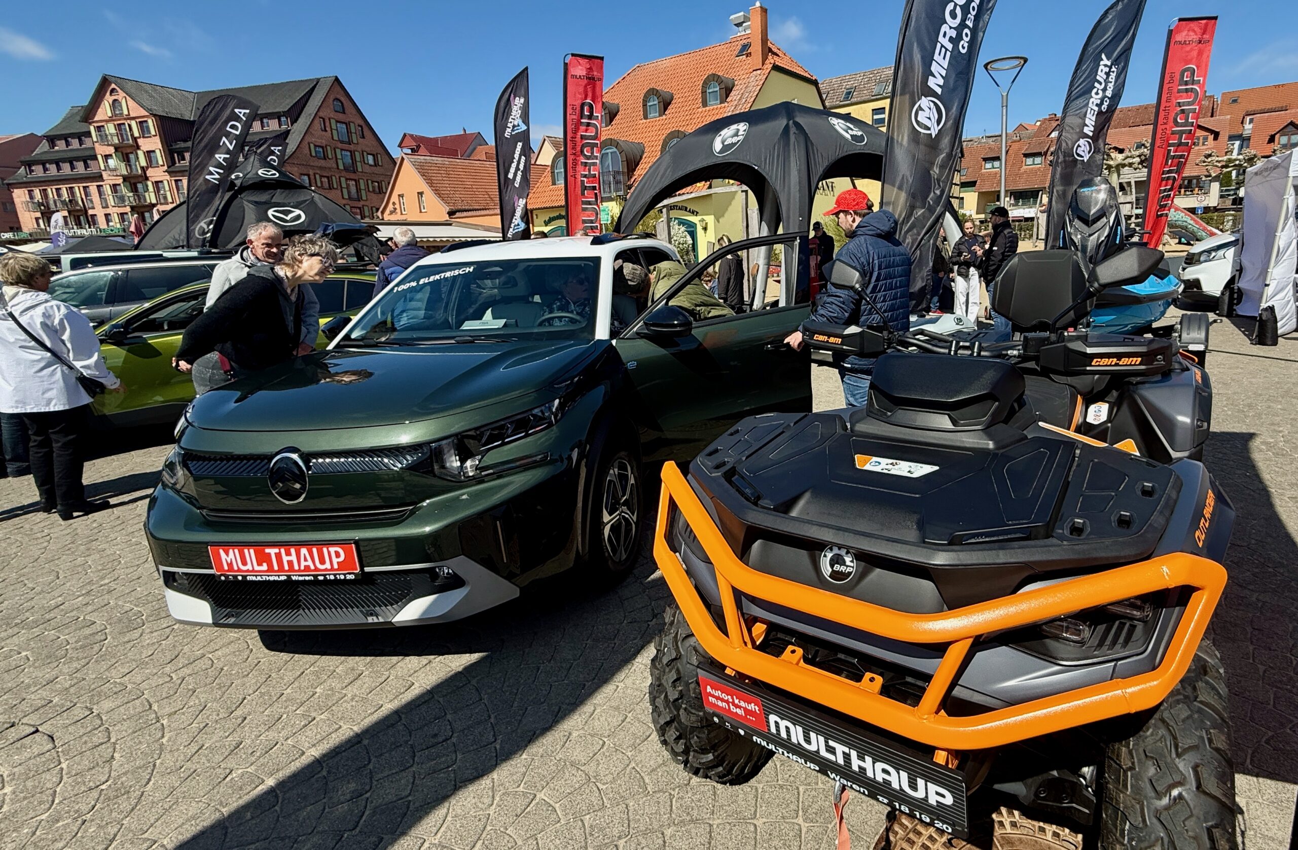Sie gehört zum Frühling an der Müritz wie die blühenden Kirschbäume und die Boote, die wieder im Hafenwasser liegen: Die Automesse. Die hat auch gestern wieder zahlreiche Besucher angezogen. Bei herrlichem Sonnenschein, aber doch kräftigem Wind schauten sie sich die neuesten Modelle an, verglichen Preise, ließen sich von den Verkäufern erklären, wie die viele Technik in den Wagen funktioniert und wurden nebenbei auch noch gut unterhalten. Auch einige historische Mopeds und Motorräder rollten auf den Platz. Davon hätte sich Veranstalter Olaf Gaulke zwar ein paar mehr gewünscht, doch der Anfang ist gemacht, im kommenden Jahr werden’s sicher mehr. Zumal das Interesse der Besucher groß war. Denn hier und da kamen schon Jugenderinnerungen auf, vor allem bei den Simson-Modellen. Für die Aussteller gab’s zu Belohnung einen geräucherten Saibling von den Müritzfischer.